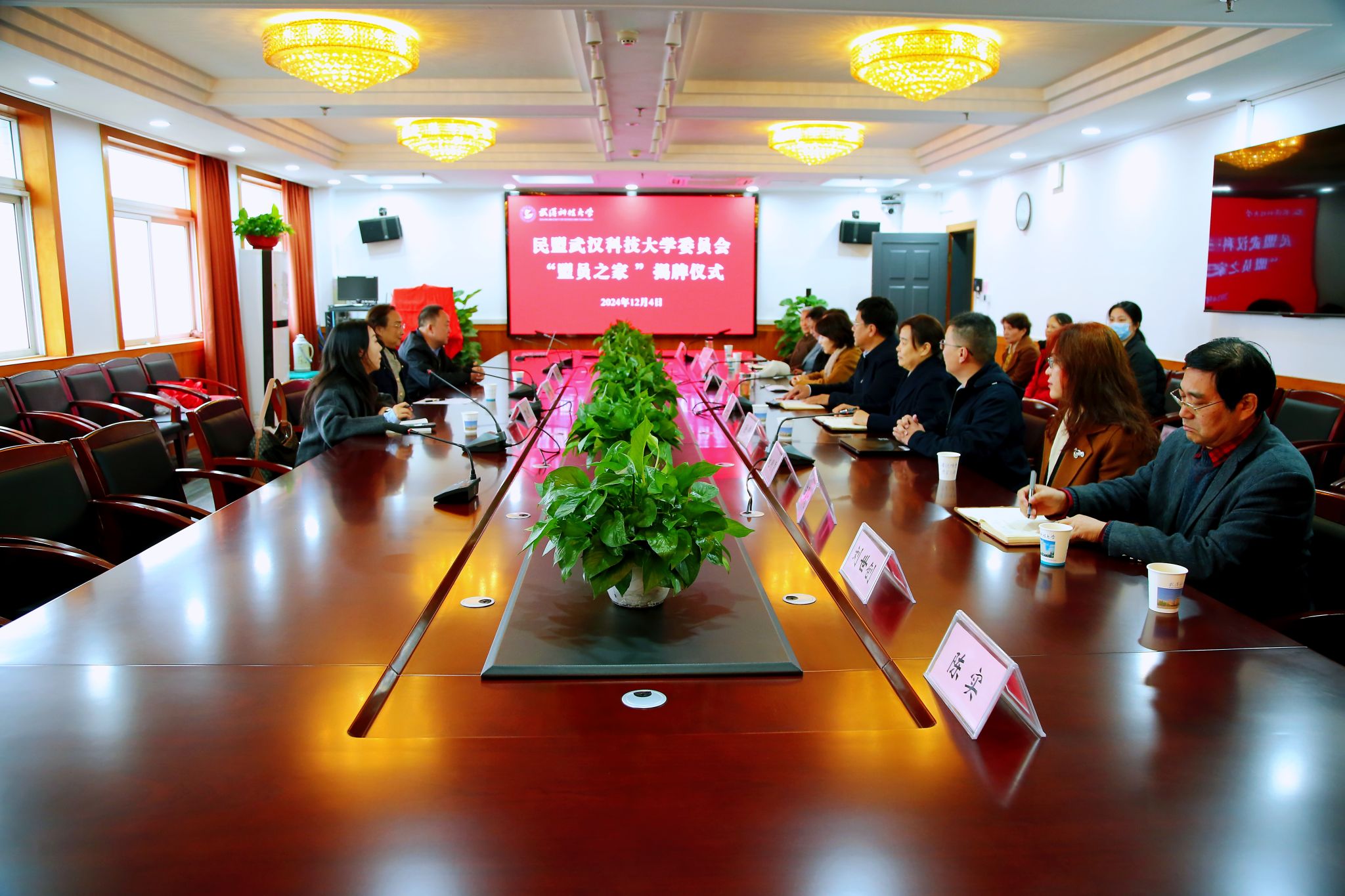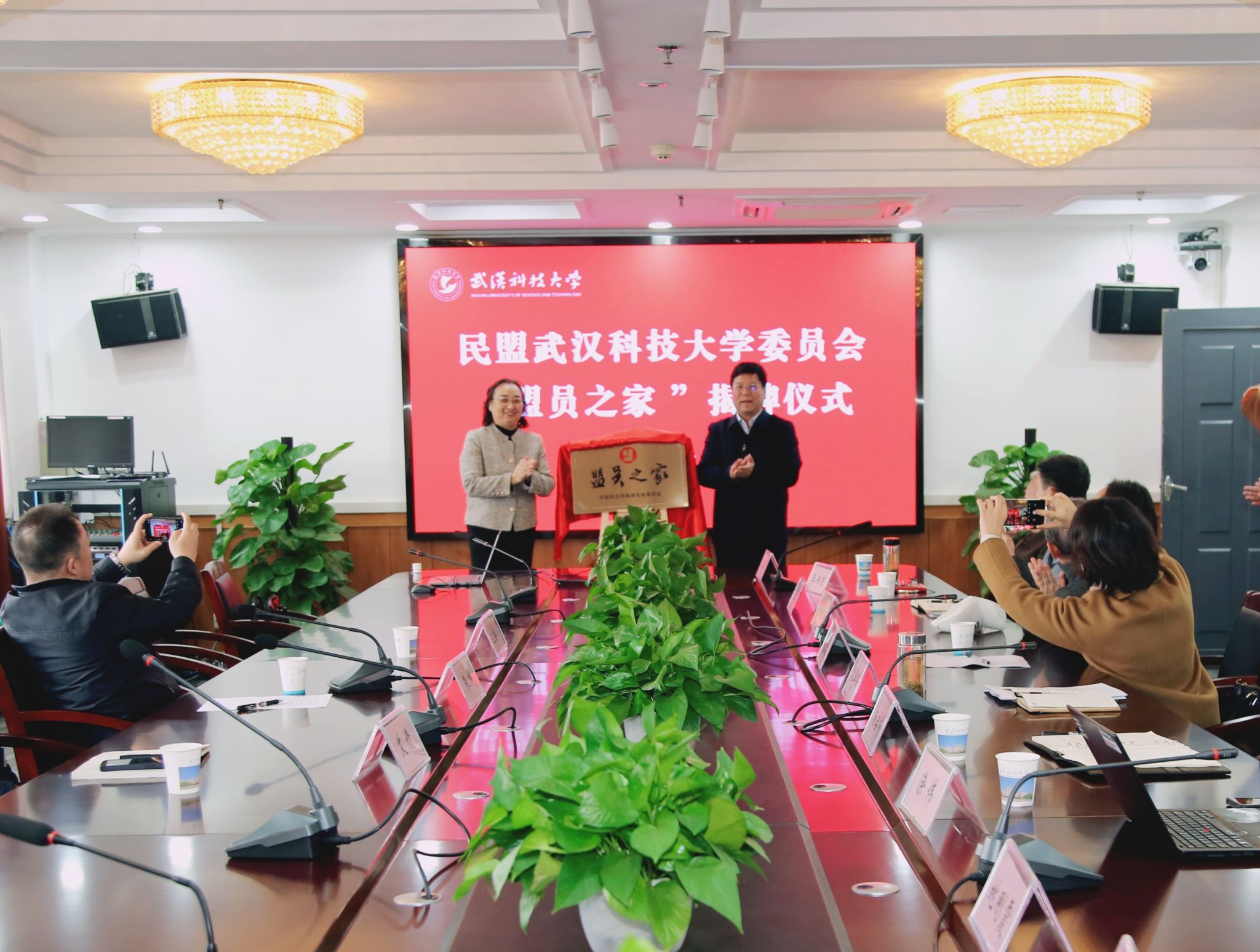 武科大网讯 12月4日上午,民盟yabo鸭脖官网委员会“盟员之家”揭牌仪式在青山校区主楼1610会议室隆重举行,省政协副秘书长、民盟省委专职副主委朱梅,民盟省委宣传部部长汪洪兴,鸭脖党委副书记沈季伟,统战部常务副部长杨启梅,民盟yabo鸭脖官网委员会委员及部分盟员代表参加活动。民盟yabo鸭脖官网委员会主委田胜兰主持揭牌仪式。