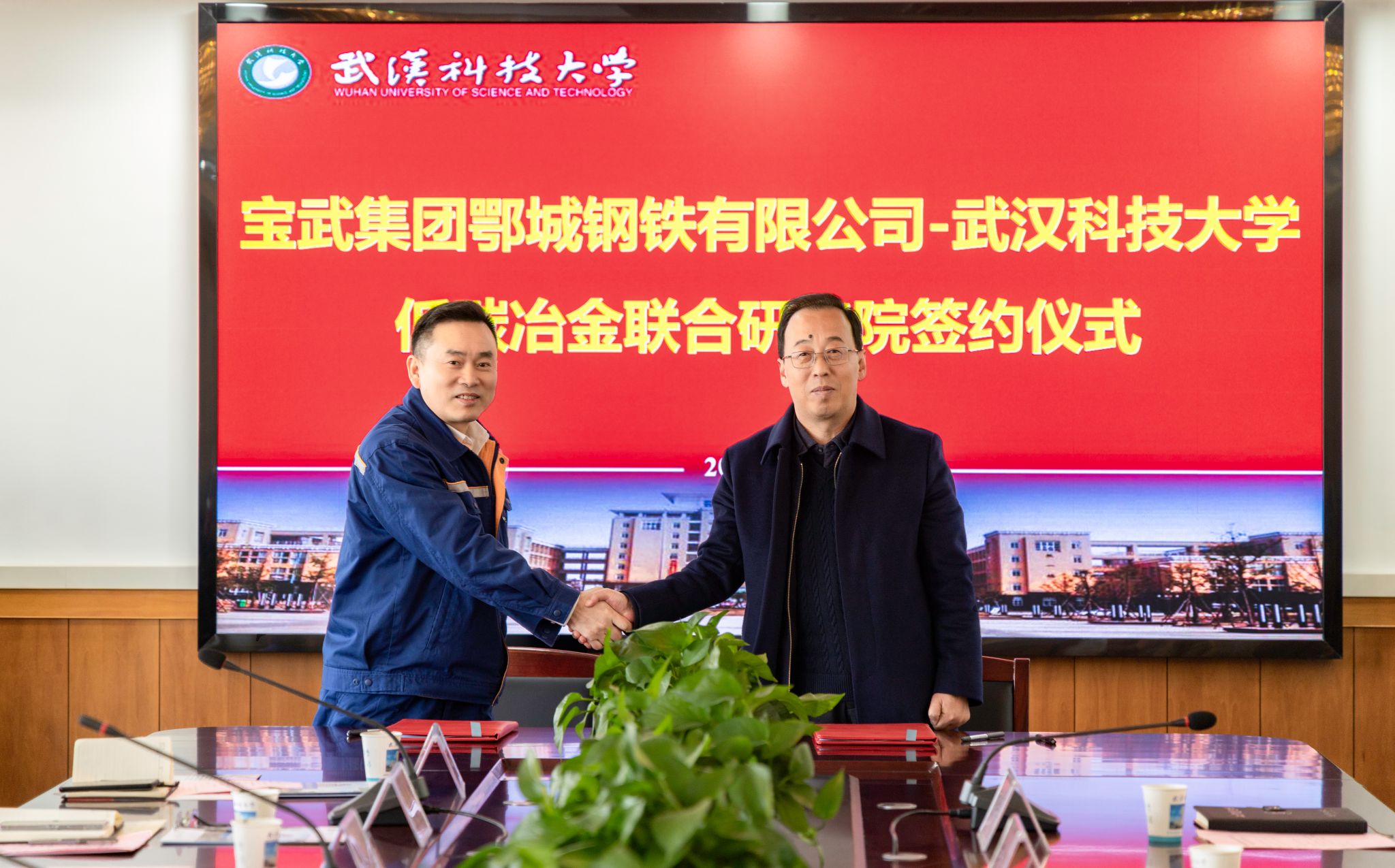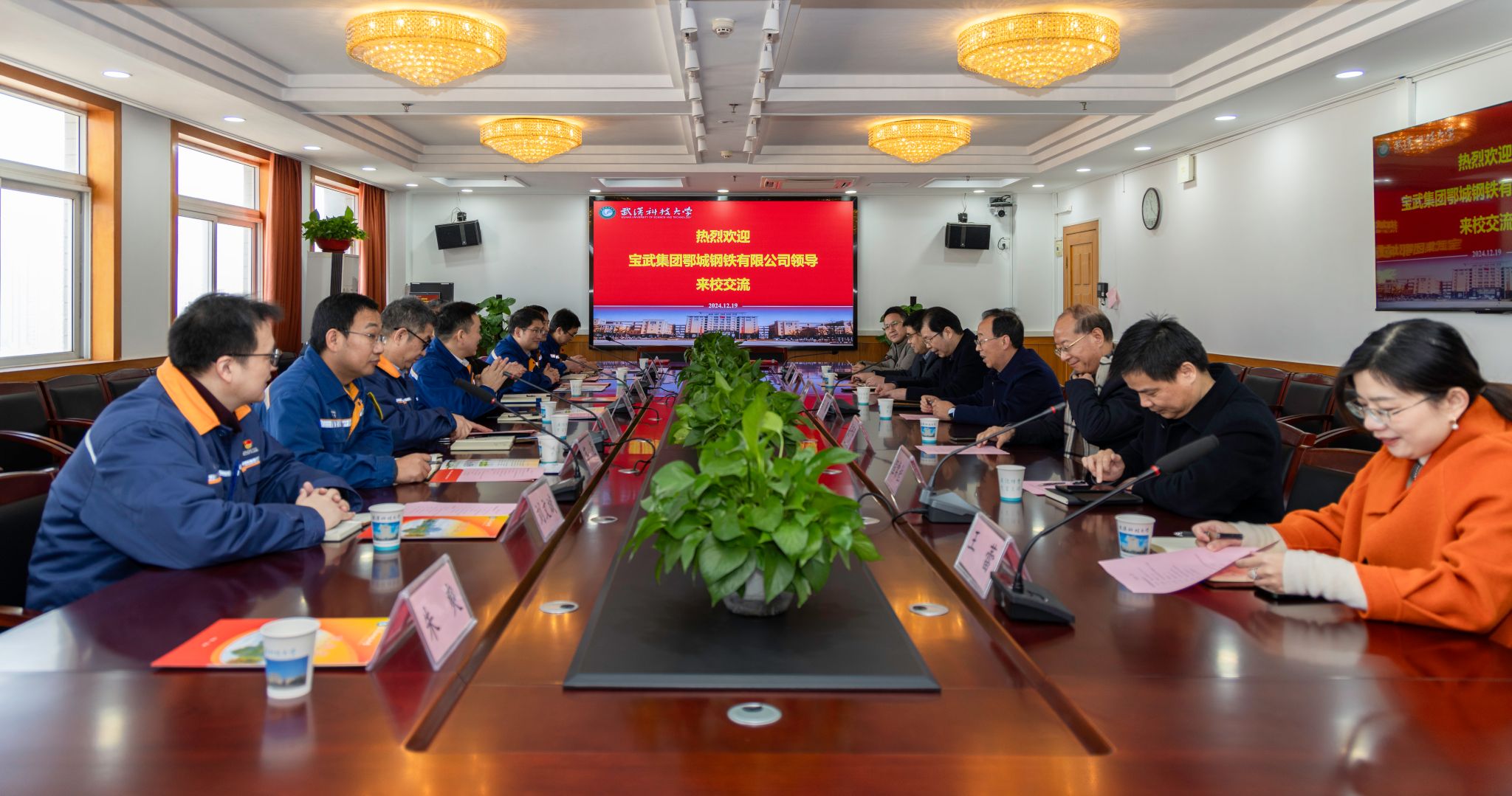 武科大网讯(记者陈孖川)12月19日,宝武集团鄂城钢铁有限公司高级副总裁黄大军一行来校调研,副校长马腾在青山校区主楼1610会见来宾。双方就共建宝武集团鄂城钢铁有限公司-yabo鸭脖官网低碳冶金联合研究院签订协议。科学技术发展院院长夏绪辉主持。