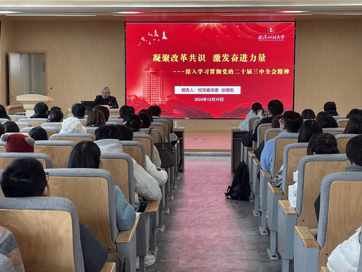 徐增阳以“凝聚改革共识,激发奋进力量”为主线,围绕“学深悟透党的二十届三中全会精神”“准确认识新时代全面深化改革的重大成就”“武科大青年的使命与担当”三个方面,对党的二十届三中全会精神作了全面宣讲和深入阐释。他强调,当前和今后一个时期是以中国式现代化全面推进强国建设、民族复兴伟业的关键时期。中国式现代化是在改革开放中不断推进的,也必将在改革开放中开辟广阔前景。在强国建设、民族复兴新征程上,当代青年要切实把思想和行动统一到党的二十届三中全会的各项部署上来,统一到以进一步全面深化改革推进中国式现代化建设进程中来。要积极投身实践,贡献青春力量;要坚持问题导向,勇于攻坚克难;要努力奋发进取,激发创新活力;要树立全球视野,积极拥抱世界。
