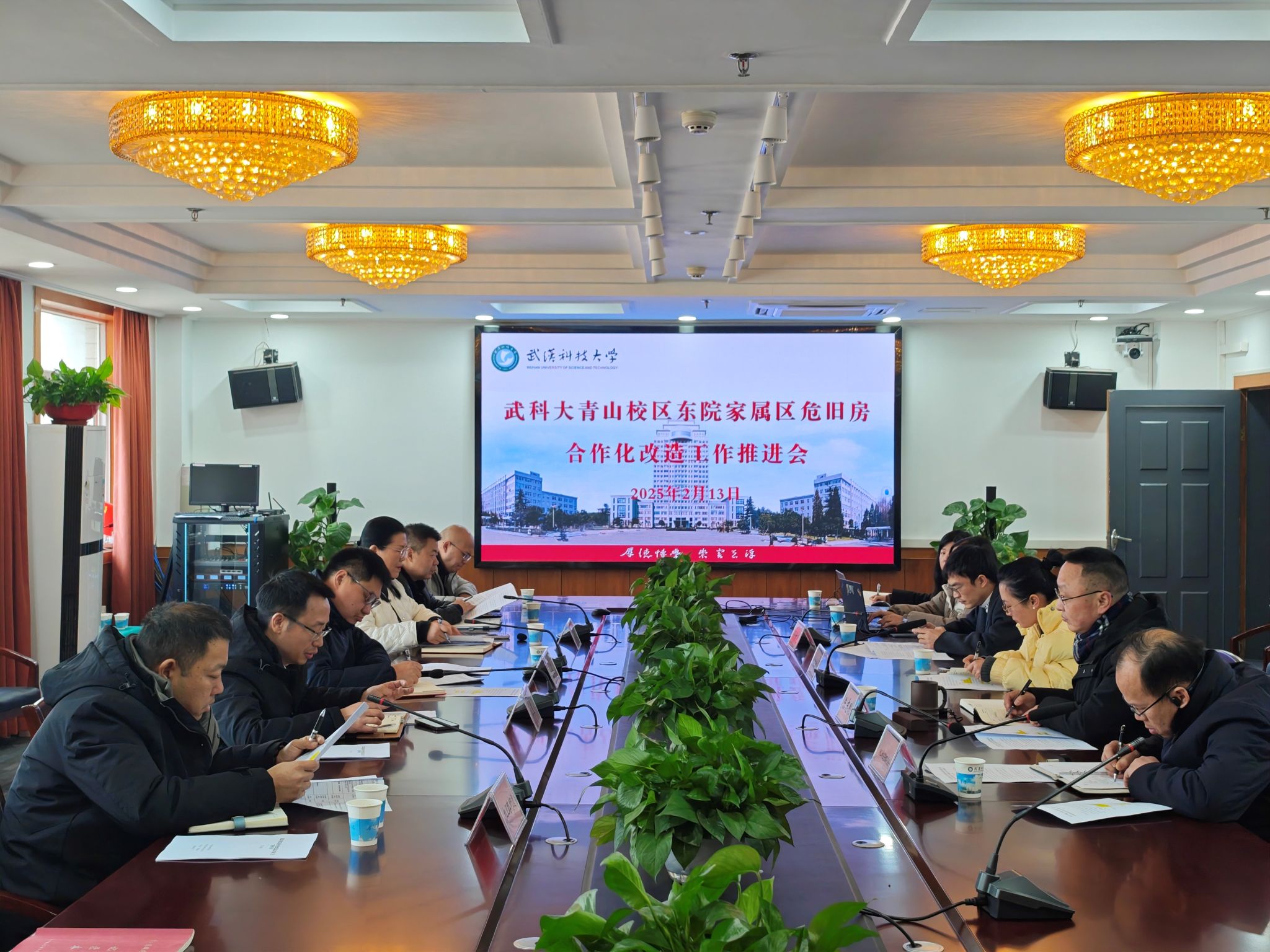 武科大网讯 2月13日上午,青山区住更局副局长胡伟胜,区资建局副局长薛羽,红卫路街综合执法中心主任刘永清和区安居集团副总工程师杜中丽等一行来校,调度鸭脖青山校区东院家属区危旧房合作化改造工作。校党委常委、副校长陈志刚出席会议。洪山校区管委会主任、新校区建设委员会常务副主任卢绍伟,校园建设处等相关同志参加了调度会。