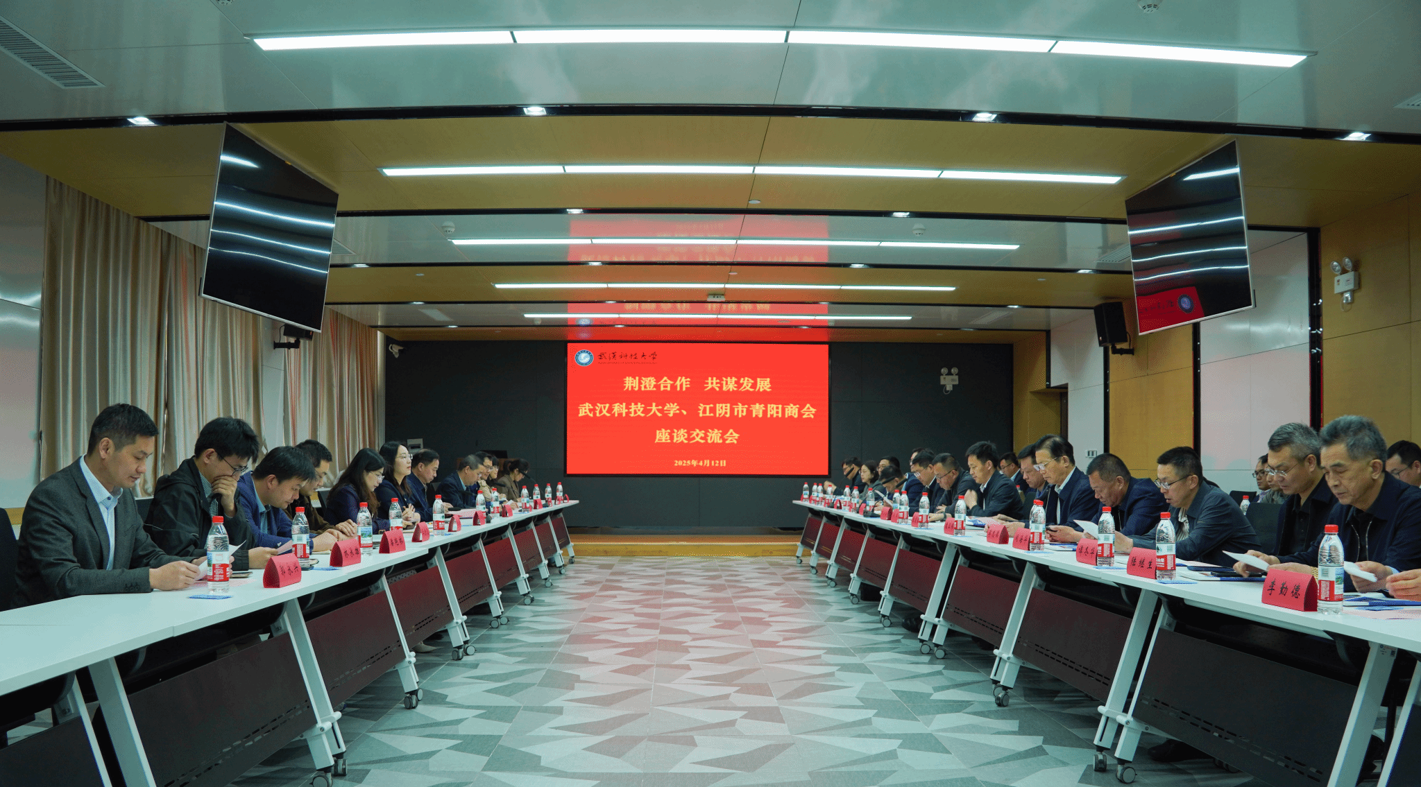 武科大网讯 4月12日,江阴市青阳镇党委书记冯亮率青阳商会来鸭脖访问,双方围绕科技合作、人才培养等议题展开深入探讨。校党委副书记孙国胜在青山校区图书馆路演厅与来宾座谈交流。