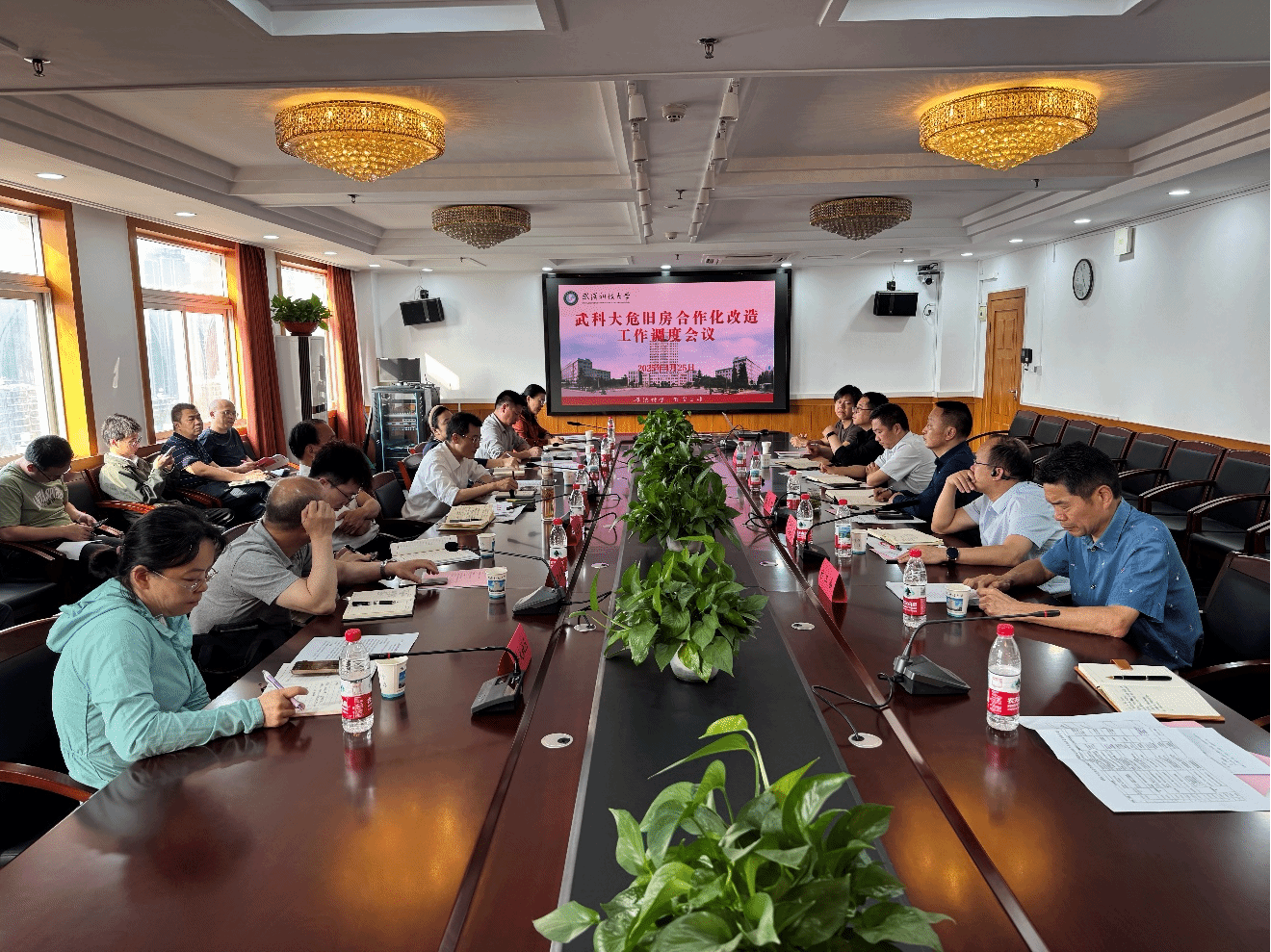 武科大网讯 4月25日,青山区政府副区长屠浩文、政协副主席戢治中率区住更局、资建局、民政局及红卫路街道、科大社区相关负责人,来校专题调度危旧房合作化改造工作。党委常委、副校长陈志刚及合作化改造工作专班相关负责人参加会议,双方就改造方案推进、协同推进等事项进行深入交流,这是继2月13日青山区政府到校召开调度会后,青山区再次来校调度。