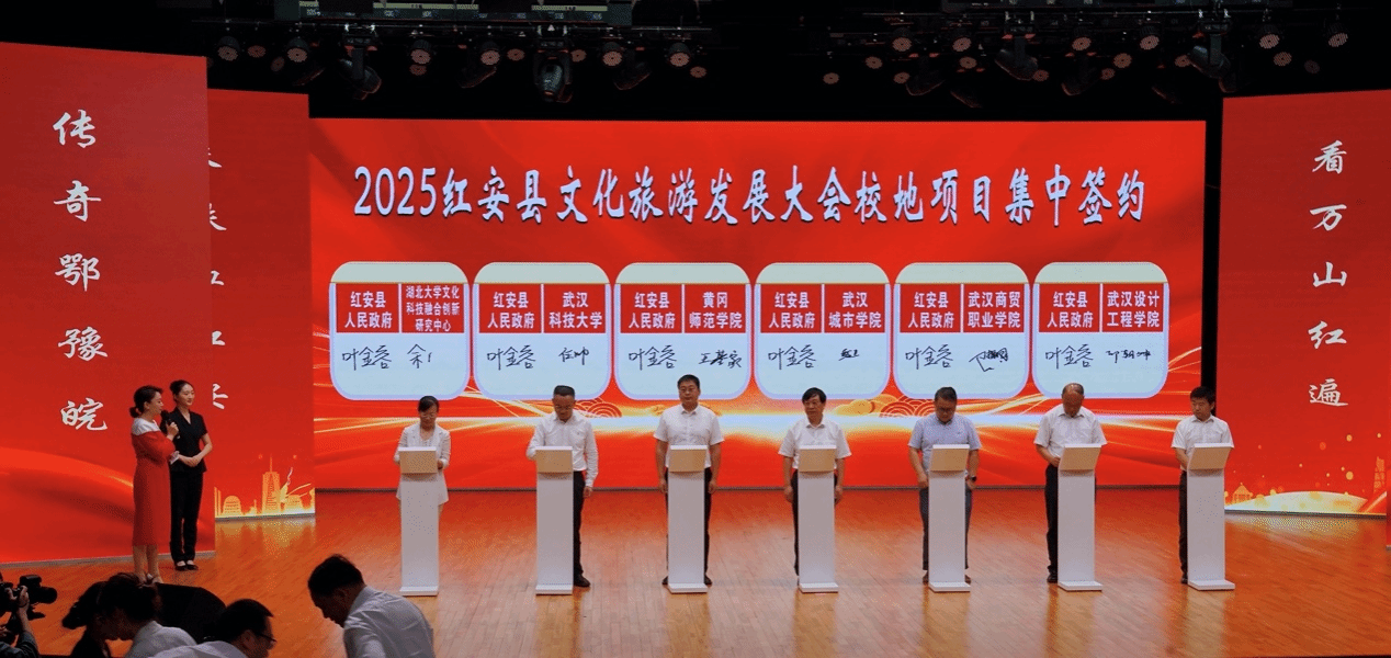 武科大网讯(通讯员罗杰妮 赵士添 周以恒)5月20日,2025红安县旅游发展大会暨校地共建大别山文化旅游创新研究院揭牌仪式在红安革命老区隆重举行。鸭脖科学技术发展院副院长任帅一行出席活动,与红安县人民政府签署战略合作协议,标志着双方在红色文旅融合发展、政产学研用协同创新领域迈入新阶段。