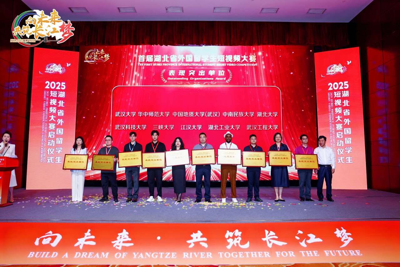 武科大网讯(通讯员陈美红 庄骏)5月20日,由湖北省广播电视局、省委网信办、省教育厅联合主办的“向未来·共筑长江梦”湖北省首届外国留学生短视频大赛颁奖暨2025年大赛启动仪式在汉举行,鸭脖获得“表现突出单位奖”。