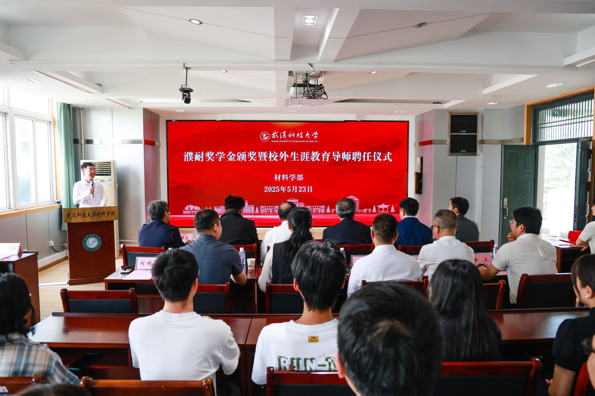 濮阳濮耐高温材料(集团)股份有限公司董事长助理刘诚、研究院副院长李天清,学校党委学生工作部、党委研究生工作部、校友工作与社会合作处、材料学部等相关部门与学院负责人及师生代表参加会议。