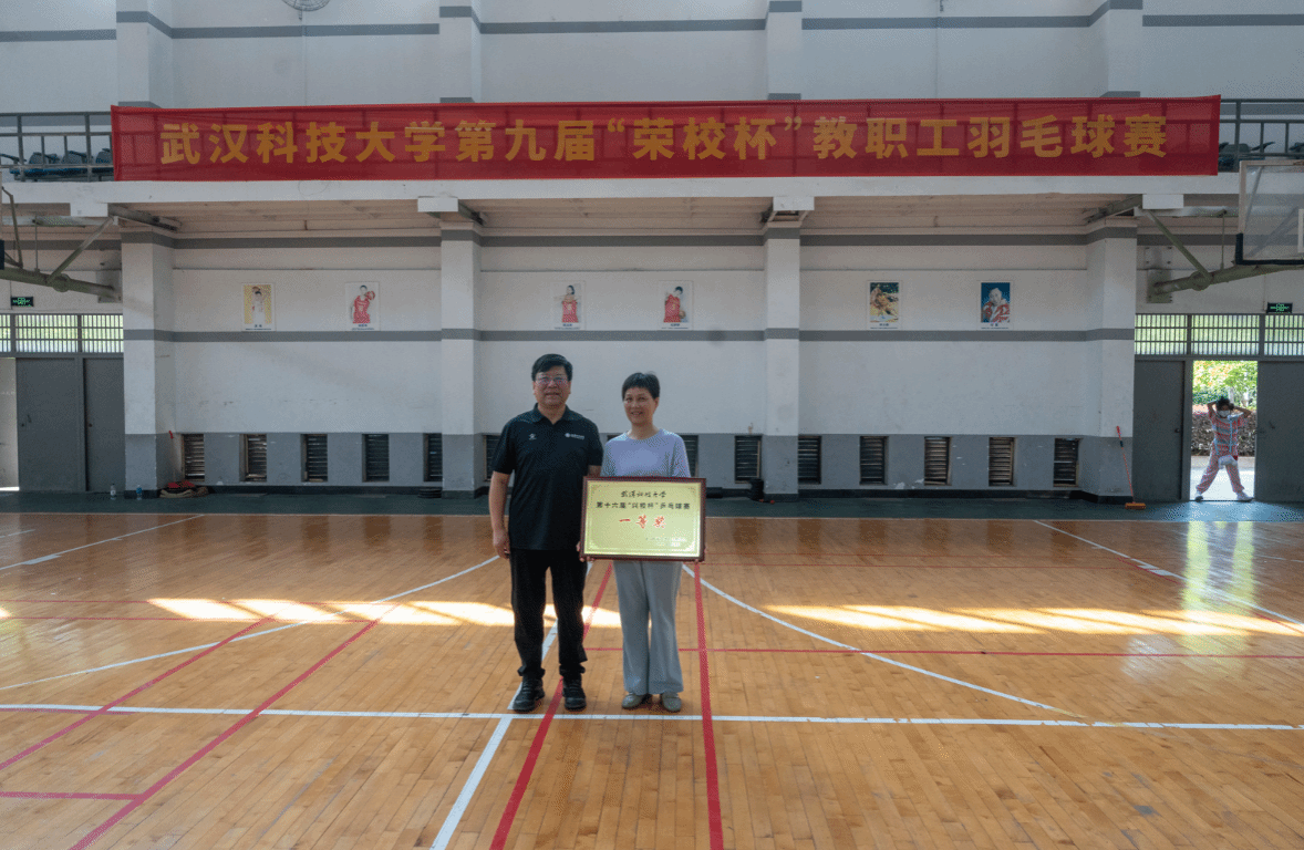 武科大网讯(见习记者周文君 摄影李钰昌)2025年5月24至25日,学校第十六届“兴校杯”乒乓球、第九届“荣校杯”羽毛球比赛颁奖仪式在青山校区体育馆落幕。校党委副书记、工会主席沈季伟出席颁奖仪式。