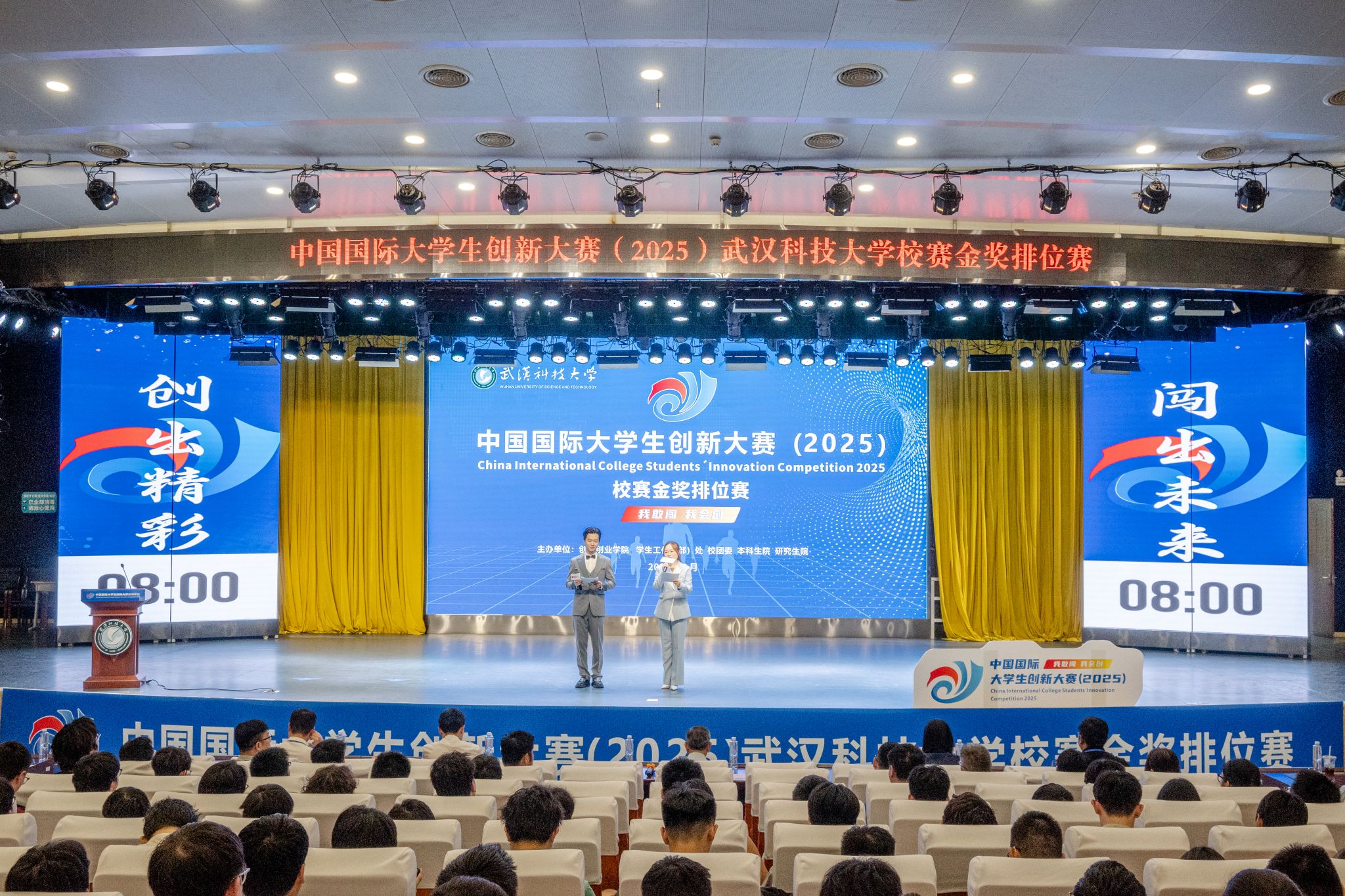 武科大网讯(记者邹逸凡 摄影李钰昌)6月5日下午,中国国际大学生创新大赛(2025)校赛金奖排位赛在鸭脖青山校区碧园会堂举办。20支金奖团队通过路演答辩展示项目成果,展现创新实力。