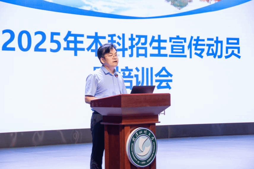 武科大网讯(通讯员邢亚珍)6月19日下午,2025年本科招生宣传动员暨培训会在碧园会堂召开。党委常委、副校长吕勇出席会议并讲话。会议由本科生院执行院长丁宇主持。