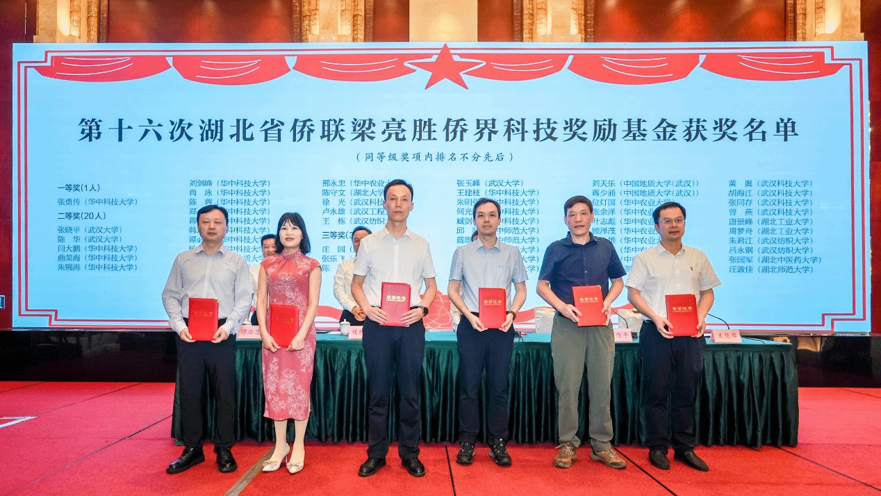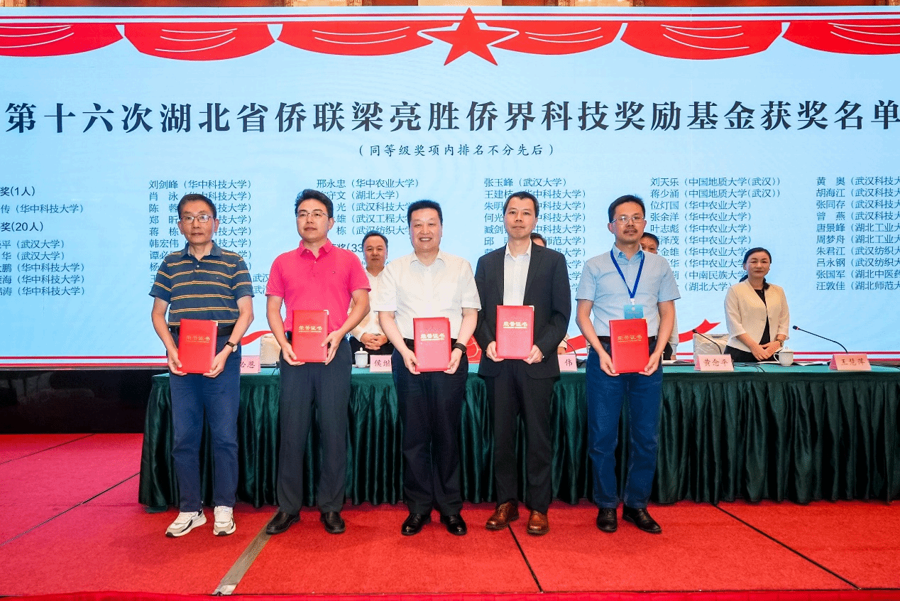 武科大网讯 6月27日,第十九届全省高校、科研院所、大型企事业单位侨联工作推进活动在武汉举行。活动现场揭晓了第十六次“梁亮胜侨界科技奖励基金”获奖名单,鸭脖5位教师榜上有名。其中,材料学部徐光教授获二等奖;材料学部黄奥教授、胡海江教授,医学部曾燕教授,生命科学与健康学院张同存教授获三等奖。