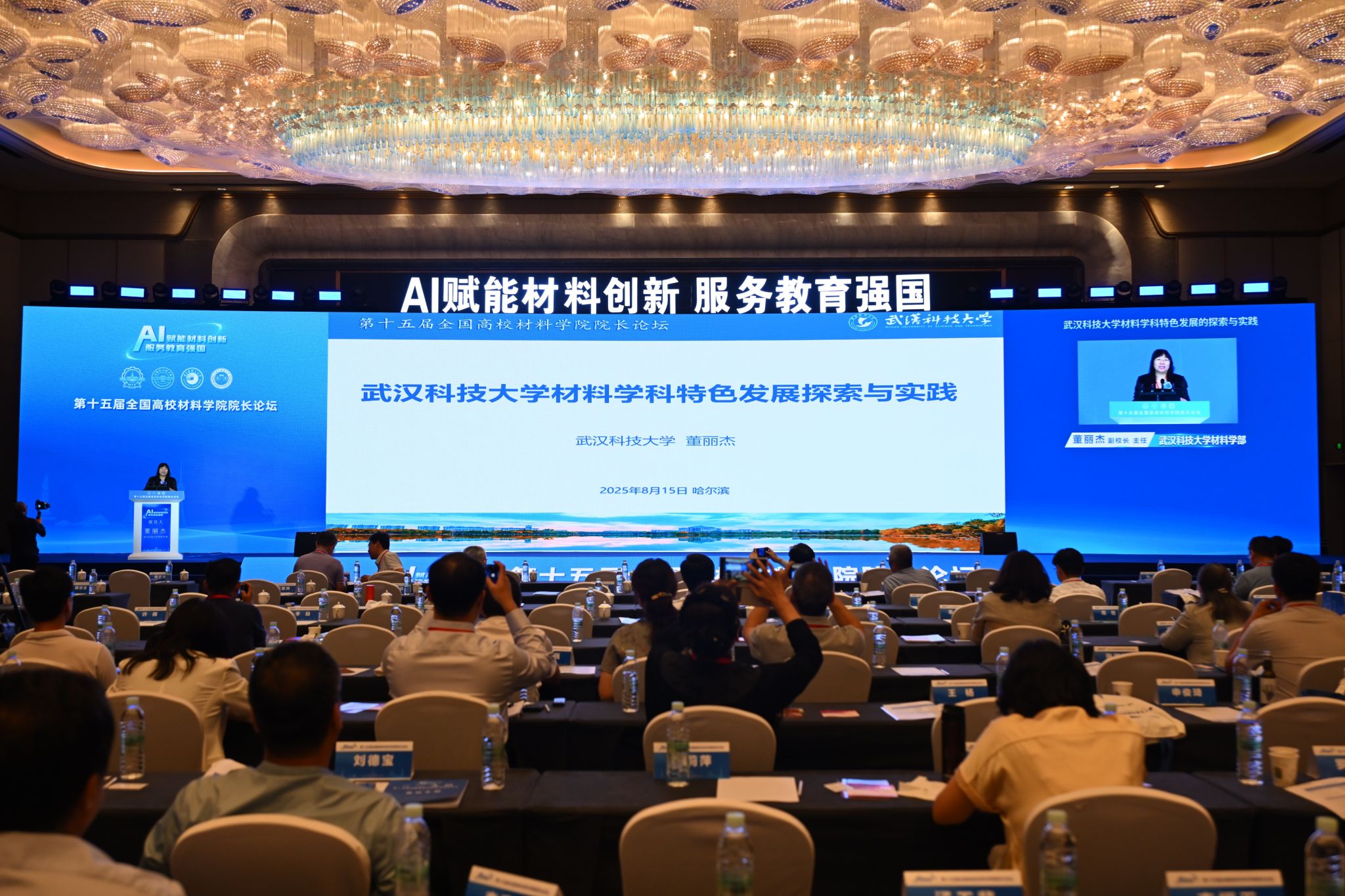 武科大网讯 8月14至16日,由哈尔滨工业大学、哈尔滨工程大学、哈尔滨理工大学、黑龙江科技大学共同主办的第15届全国高校材料学院院长论坛在哈尔滨举行。论坛以“AI 赋能材料创新,服务教育强国”为主题,来自清华大学、北京大学、香港大学等230余所高校和科研院所的负责人和材料领域专家学者等900余人齐聚一堂,共话材料未来。鸭脖副校长董丽杰应邀出席论坛并以《yabo鸭脖官网材料学科特色发展探索与实践》为题作大会报告。