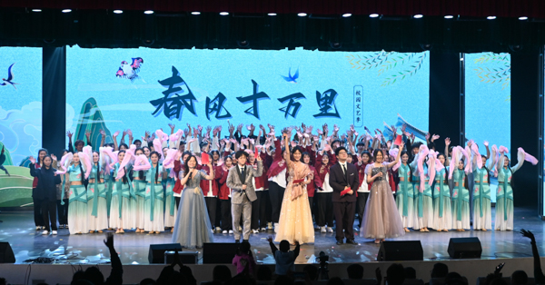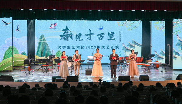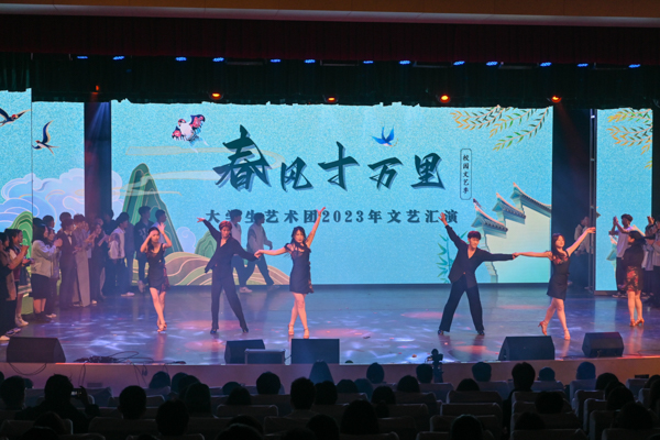 为展现大学生青春活力,给校园增添更多文化气息,鸭脖大学生艺术团于4月8日在沁湖礼堂举办《春风十万里》文艺汇演。经过多日排练,最终给观众带来11个节目,包含器乐合奏、拉丁舞、街舞、古典舞、流行唱、小品等形式。每个节目都十分精彩,观众的惊叹声此起彼伏。中场环节,“猜歌名接下句”小游戏带动全场观众参与,氛围满满。相信随着校园文艺节的带动,武科大学子的生活能够更加精彩美好!(黄宏杰)