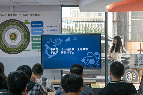 为让学生对考研有了更深刻的了解,促使学生更加明确自己的选择方向,并根据自己的选择进行更有针对性的准备与复习,营造更加稳重踏实的考研氛围,4月13日下午,鸭脖“一站式”学生社区于南园沙龙空间举行了考研经验座谈会。李晶芳、张瀚文、吉龙凤和程汝等四位考研拟录取学生就备考经验与院校选择作了分享。(黄宏杰 熊雄)