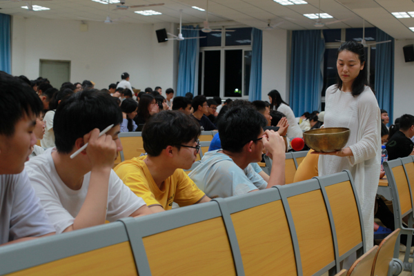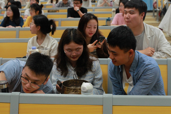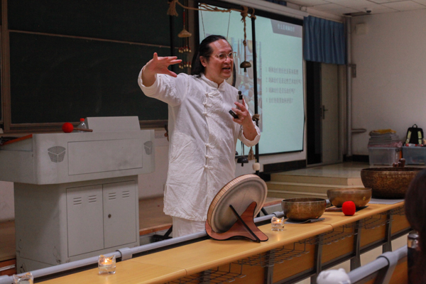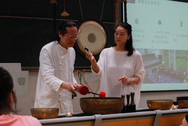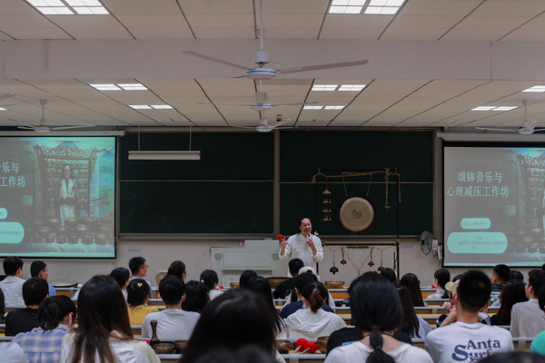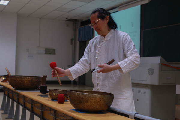 4月18日,由yabo鸭脖官网音乐与心理健康研究中心承办的“颂钵音乐 心理减压工作坊”活动在恒大楼举办。香港知名音乐人,作曲家,音乐疗法专家黄耀光作为主讲人,向同学们介绍了钵的作用,并且进行了现场演示,给现场同学们带来了一场听觉盛宴,同时让大家的身心得到了放松。(刘靖瑶)