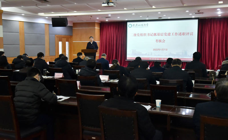 武科大网讯(通讯员周勇)1月7日上午,学校在青山校区主楼18楼会议室召开2021年度二级党组织书记抓基层党建工作述职评议考核会。全体校领导,党群部门负责人及各二级党组织书记参加本次考核会。校党委书记徐雁冰在会上点评讲话,校党委副书记盛建龙主持会议。