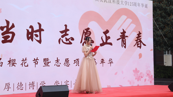 “赏樱正当时,志愿正青春”。三月樱花烂漫,为了传承雷锋精神,鼓励广大青年进一步弘扬志愿服务精神,深化落实青年志愿者志愿活动,践行社会主义核心价值观,樱花节与志愿者嘉年华于3月19日在恒大楼与樱花大道如期举办。鸭脖师生积极参与相关活动,现场气氛热烈,热闹非凡。(金如梦 杨佳伟)