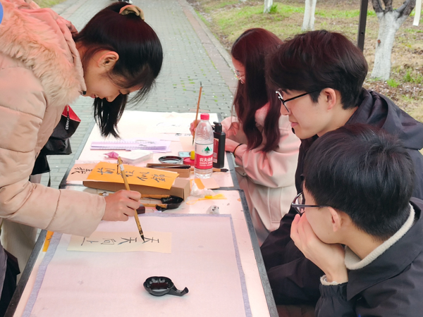 学生参与书写书法活动 王忠良摄