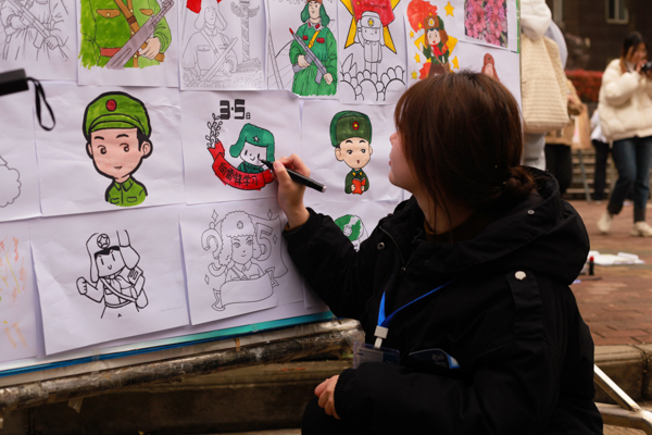 学生涂色 刘靖瑶摄