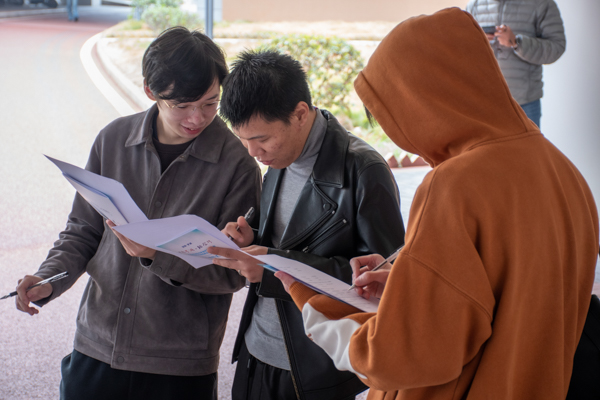阅读传单的学生 熊雄摄