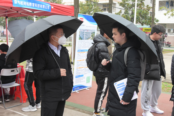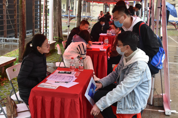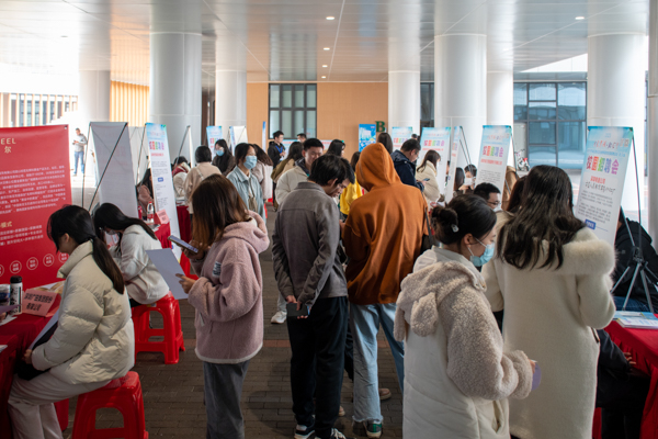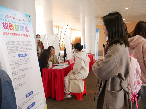 2023年3月22日下午,在鸭脖教十一楼下举办了一场招聘会,该会企业均来自深圳,学生积极面试,工作人员耐心讲解,老师及时了解相关信息为学生提供帮助,现场非常热闹。2023年3月24日下午,“鲲鹏展翅,楚才齐聚”2023春季人才双选会于鸭脖黄家湖校区教十一楼中庭广场举办。本次活动由武汉市软件产业协会与长江鲲鹏联合举办,吸引力不少武汉软件企业与鸭脖毕业生前来参加。2023年3月23日下午,“百校联动”重点高校2023届毕业生春季联合招聘会暨武科大专场,携手武汉市新洲区2023年春季校招会武科大专场,于黄家湖校区教十一楼中庭广场成功举办。(伍倩颖 熊雄 杨天羿)