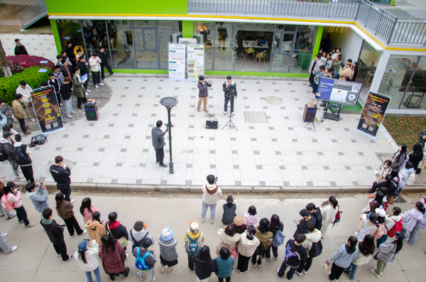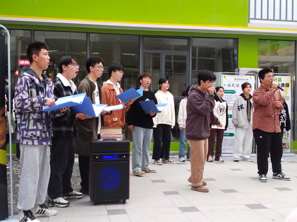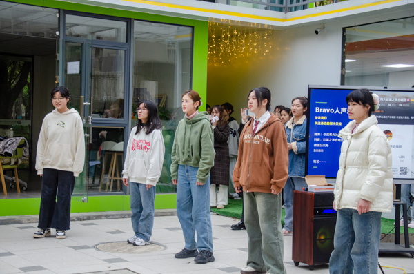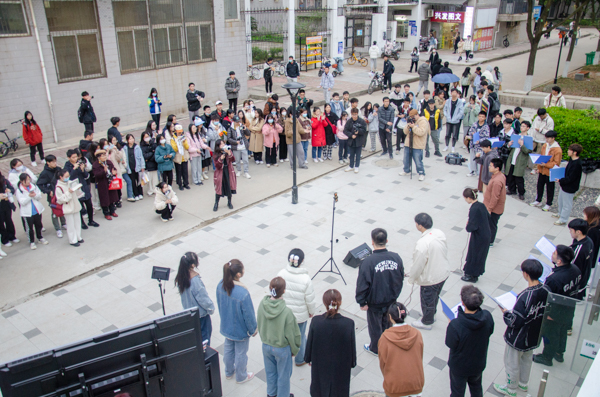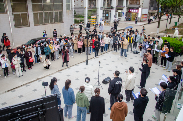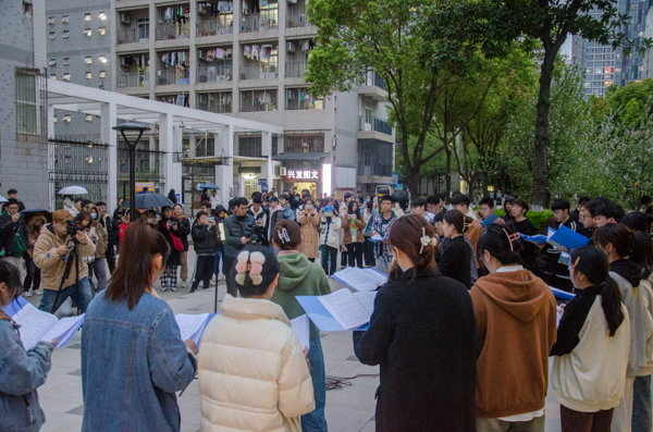 2023年3月24日傍晚,鸭脖“沁湖之声”合唱团在南苑一站式学生社区举行草坪音乐会,共表演了阿卡贝拉、流行等12首曲目,现场气氛热闹,不少同学驻足观看。(梁绮琪)