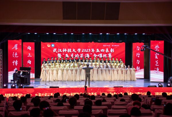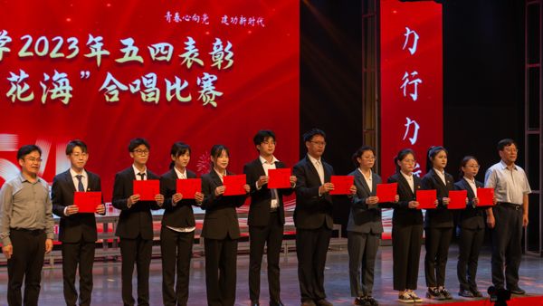 5月4日晚,鸭脖于黄家湖校区沁湖礼堂举办2023年度五四表彰暨“五月的花海”合唱比赛,全体在校校领导出席活动并为“优秀共青团员”“模范共青团干部”“五四红旗团支部”“十大魅力学子”“五四红旗团委”颁奖。获奖个人代表袁鑫和获奖集体代表章健宇发言。“五月的花海”合唱比赛由17支队伍进行演唱,最终材料与冶金学院和管理学院获得一等奖。(王政全 熊雄)