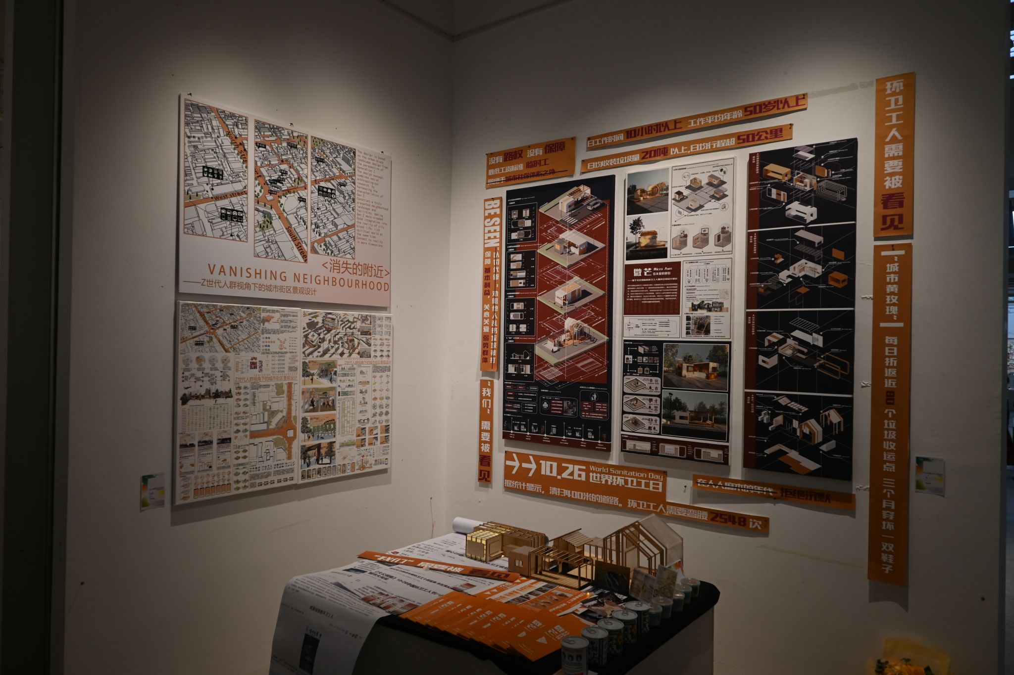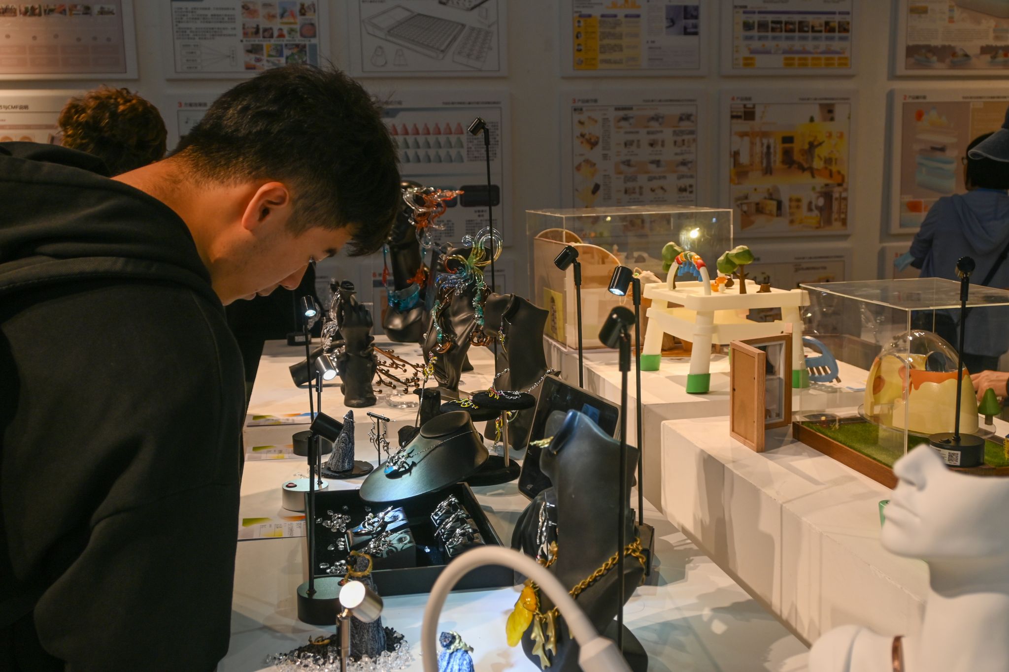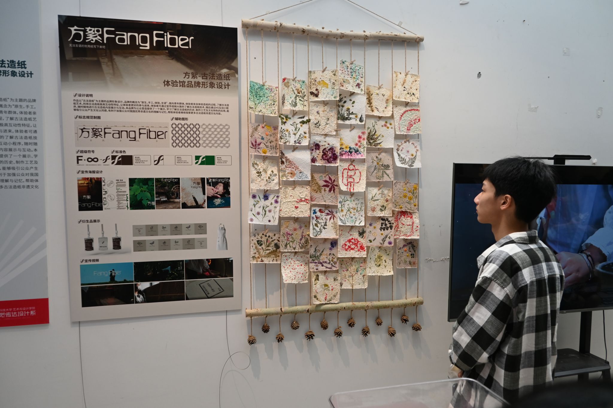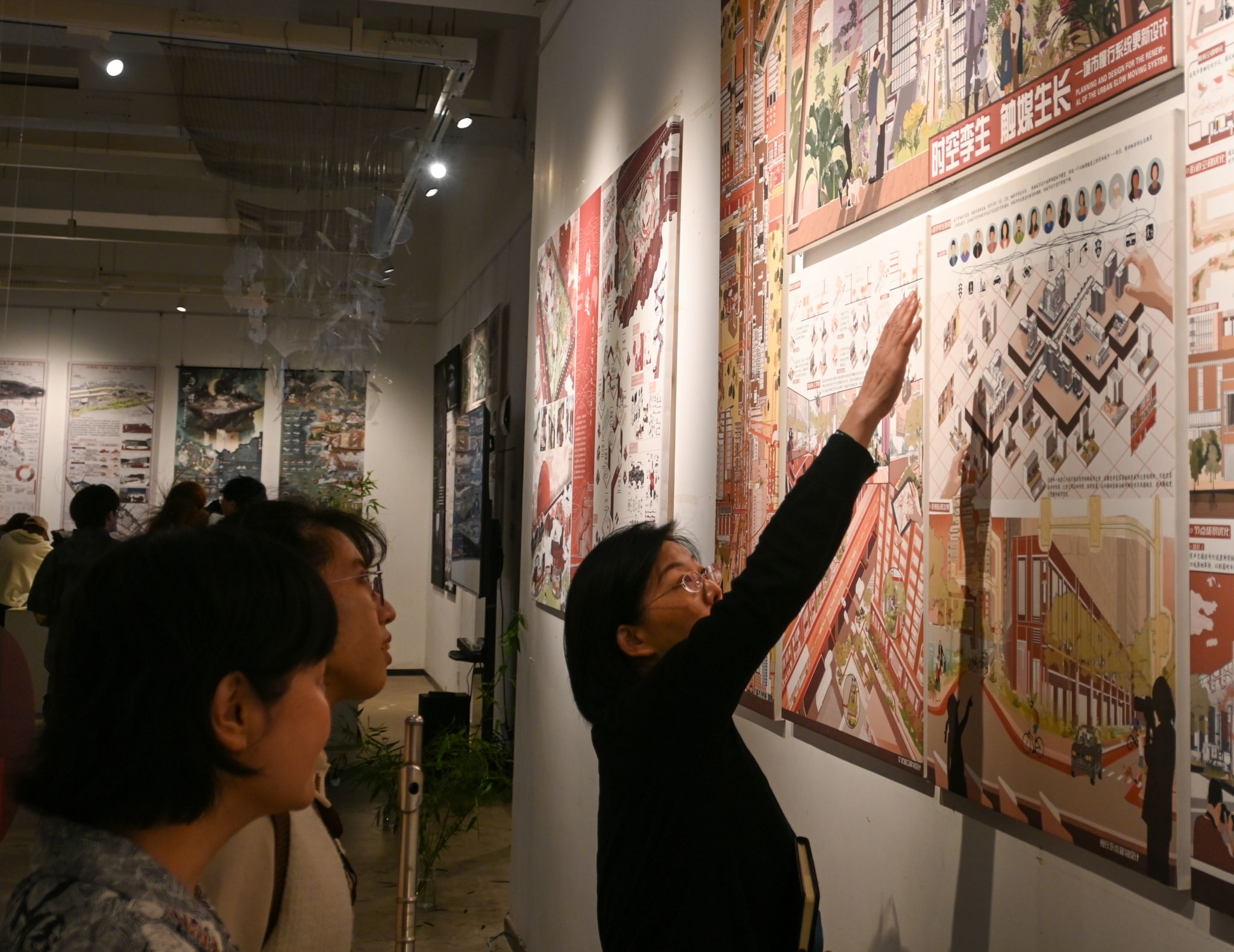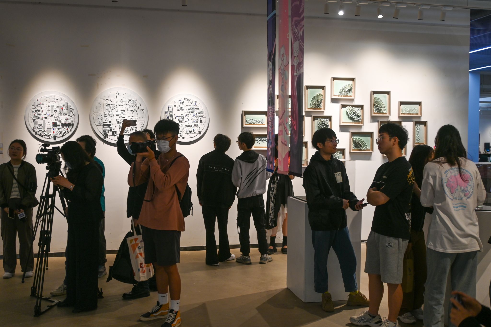 学生给参观者介绍作品《时空孪生 触媒生长》 黄宏杰摄