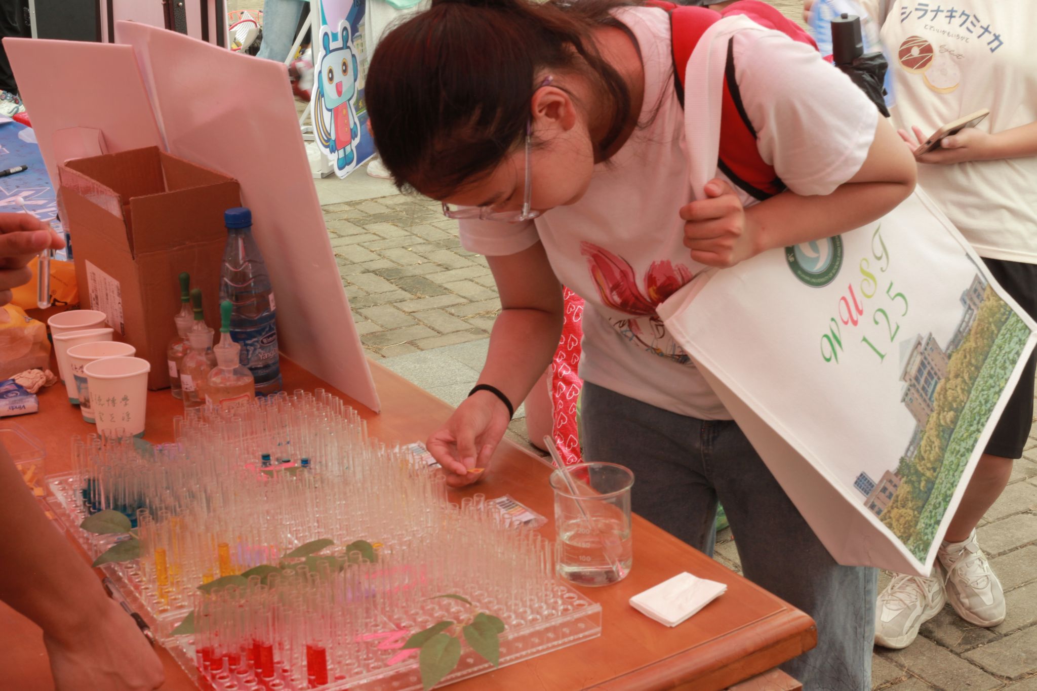 新生对125变色实验产生浓厚兴趣 江子琪摄