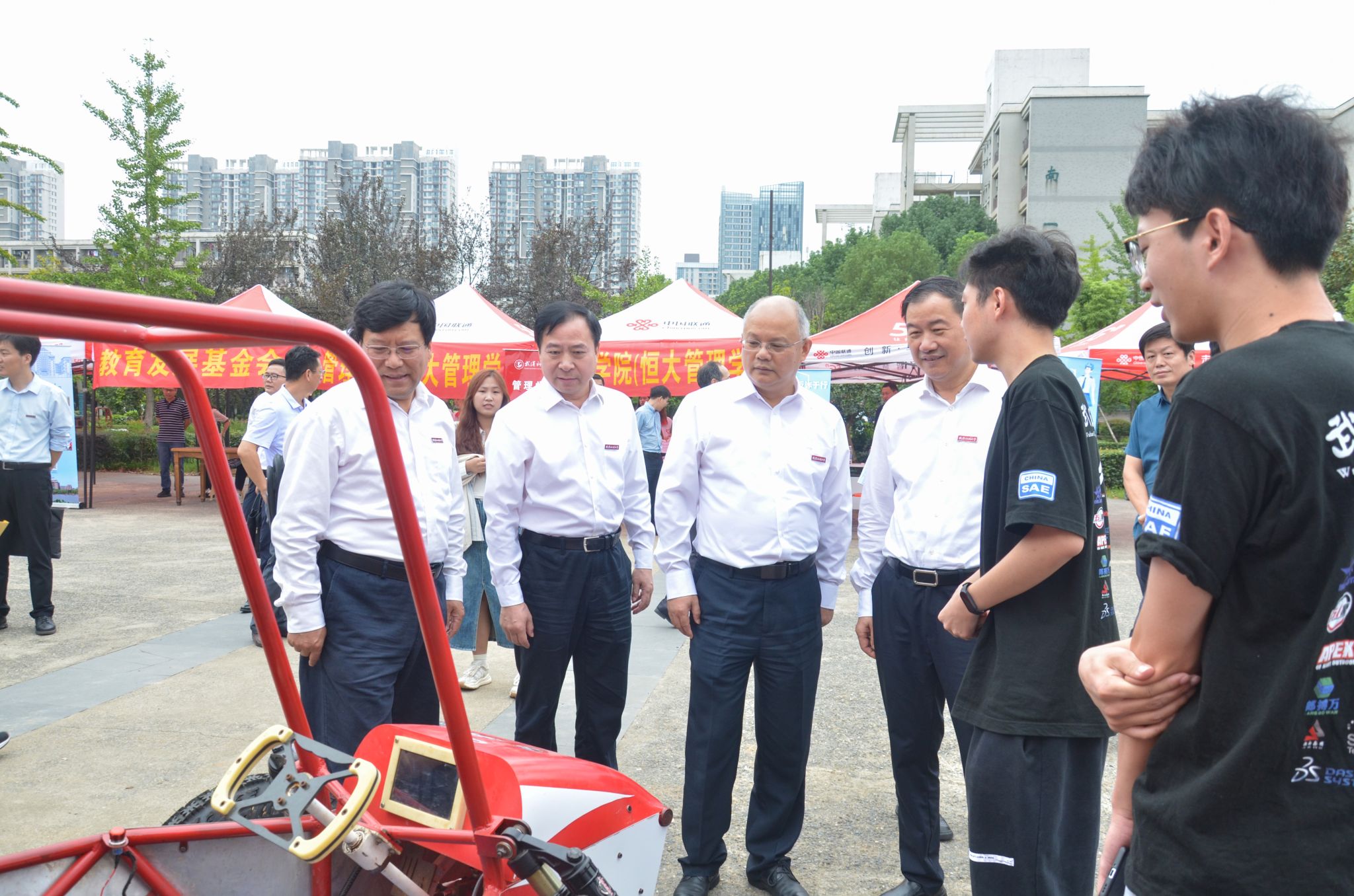 书记校长在志愿者的带领下体验化工学院125化学实验 杨佳伟摄