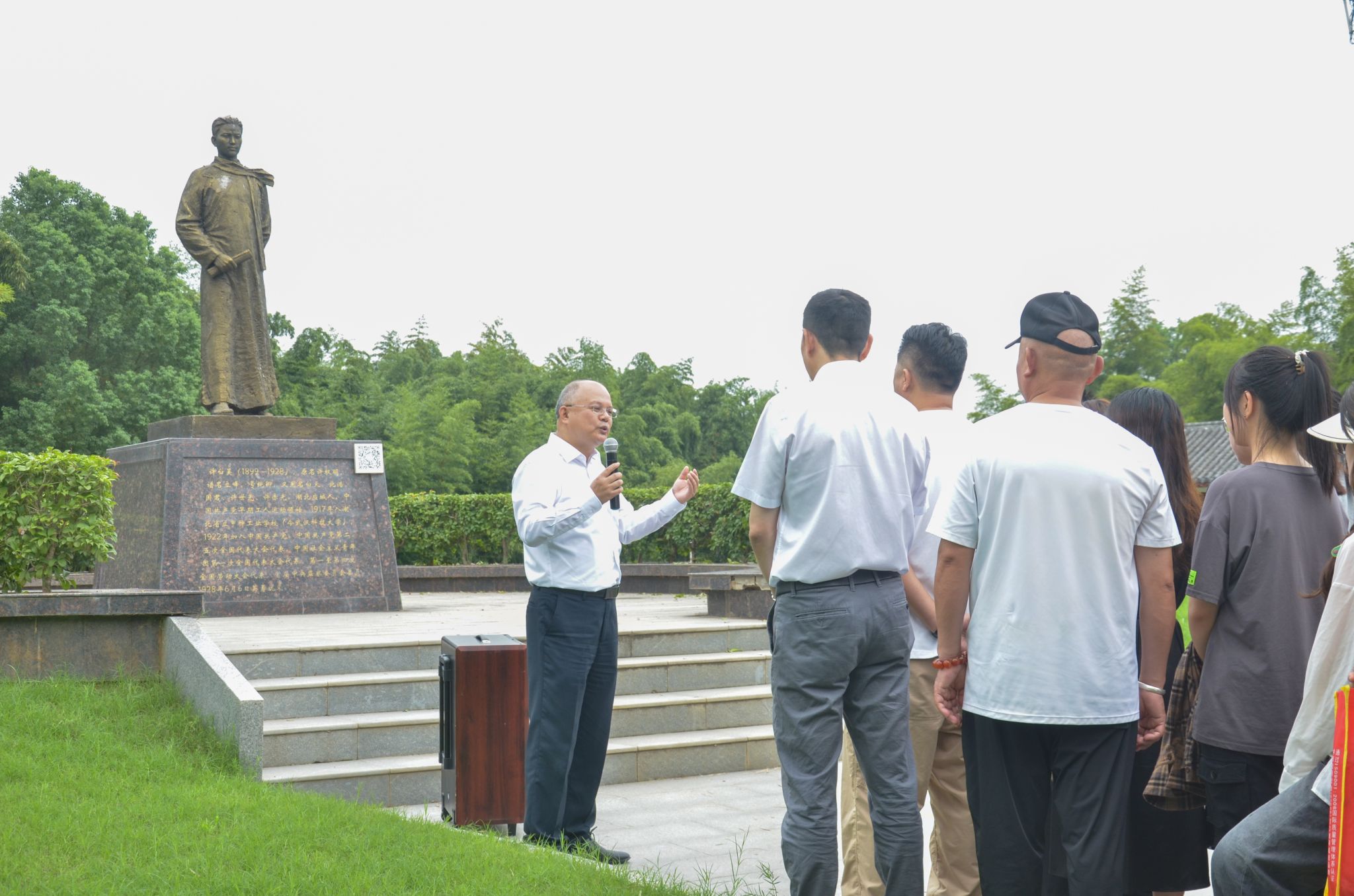 校长带领新生以及家长参观张之洞像 杨佳伟摄