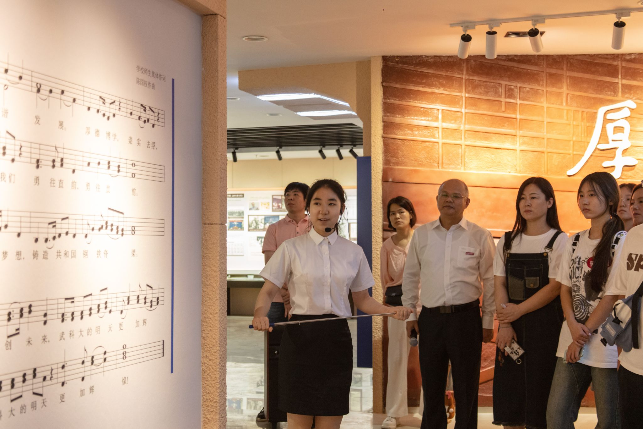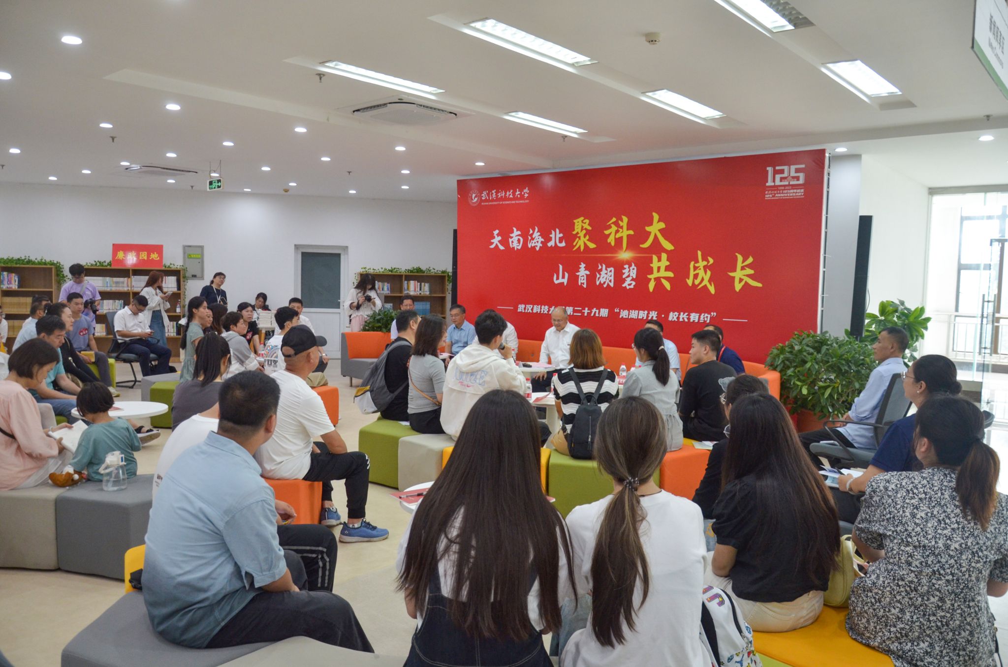 9月14日,校长带领新生代表及家长依次参观并讲解了张之洞像、廉园、许白浩像、校友名人园及校史馆,最后于黄家湖校区图书馆二楼召开校长有约座谈会。座谈会上,各位新生代表和家长依次发言表达自己的感受和疑惑,校长耐心解答并做总结发言。会后校长为每个家庭代表都赠送了文创礼品,并合影留念。(杨佳伟)