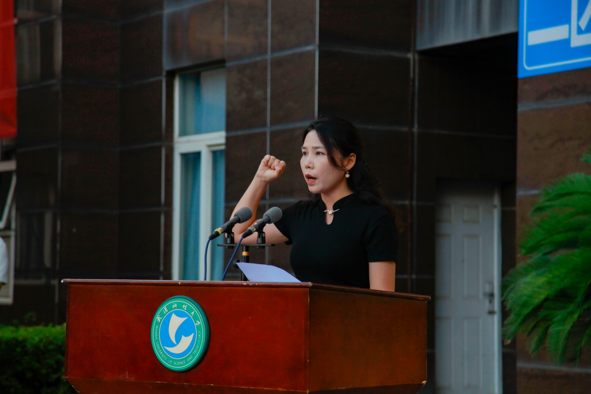 学生代表工商管理类2023级5班吴雅雯同学国旗下讲话 吴毅萌摄