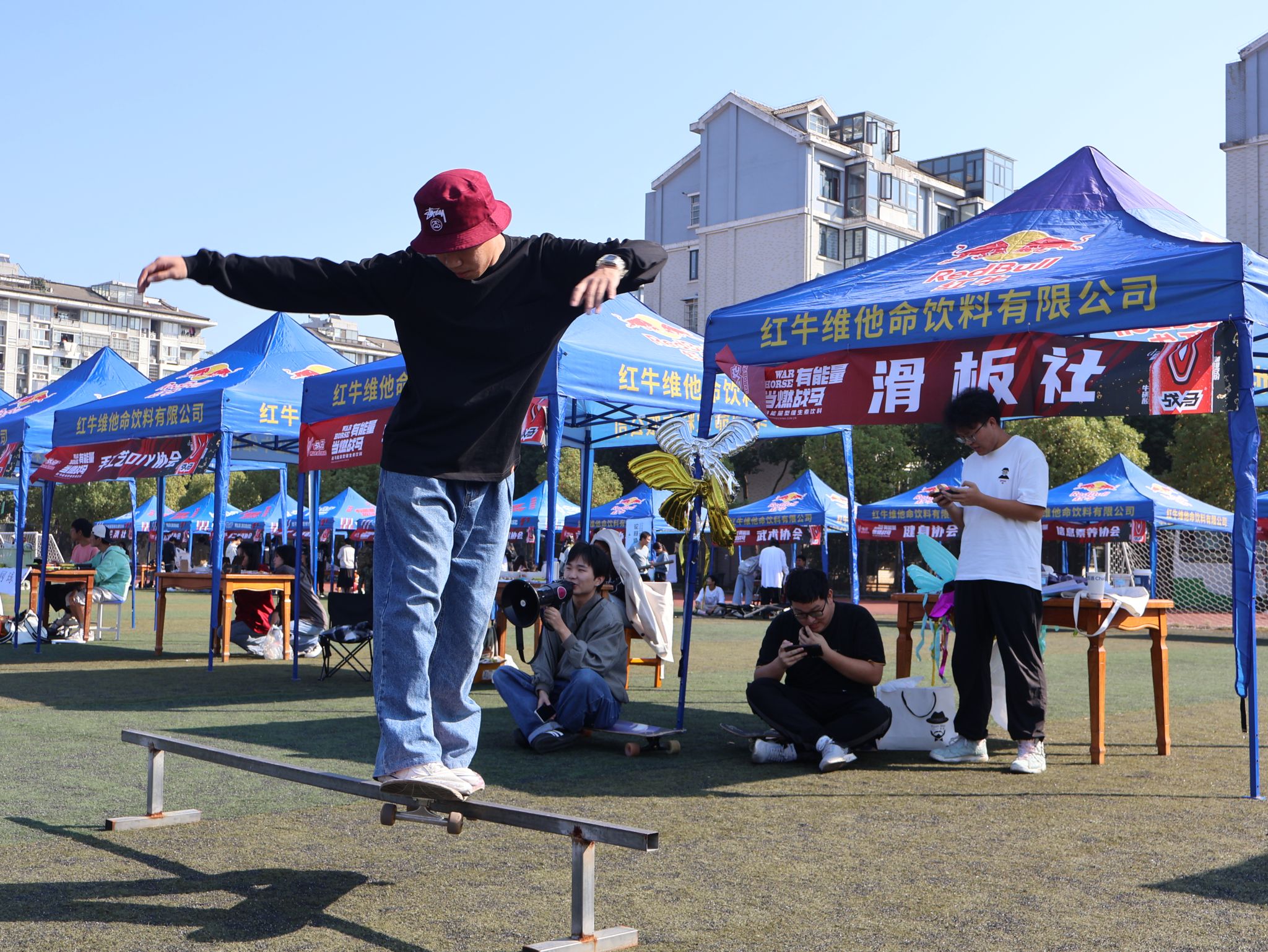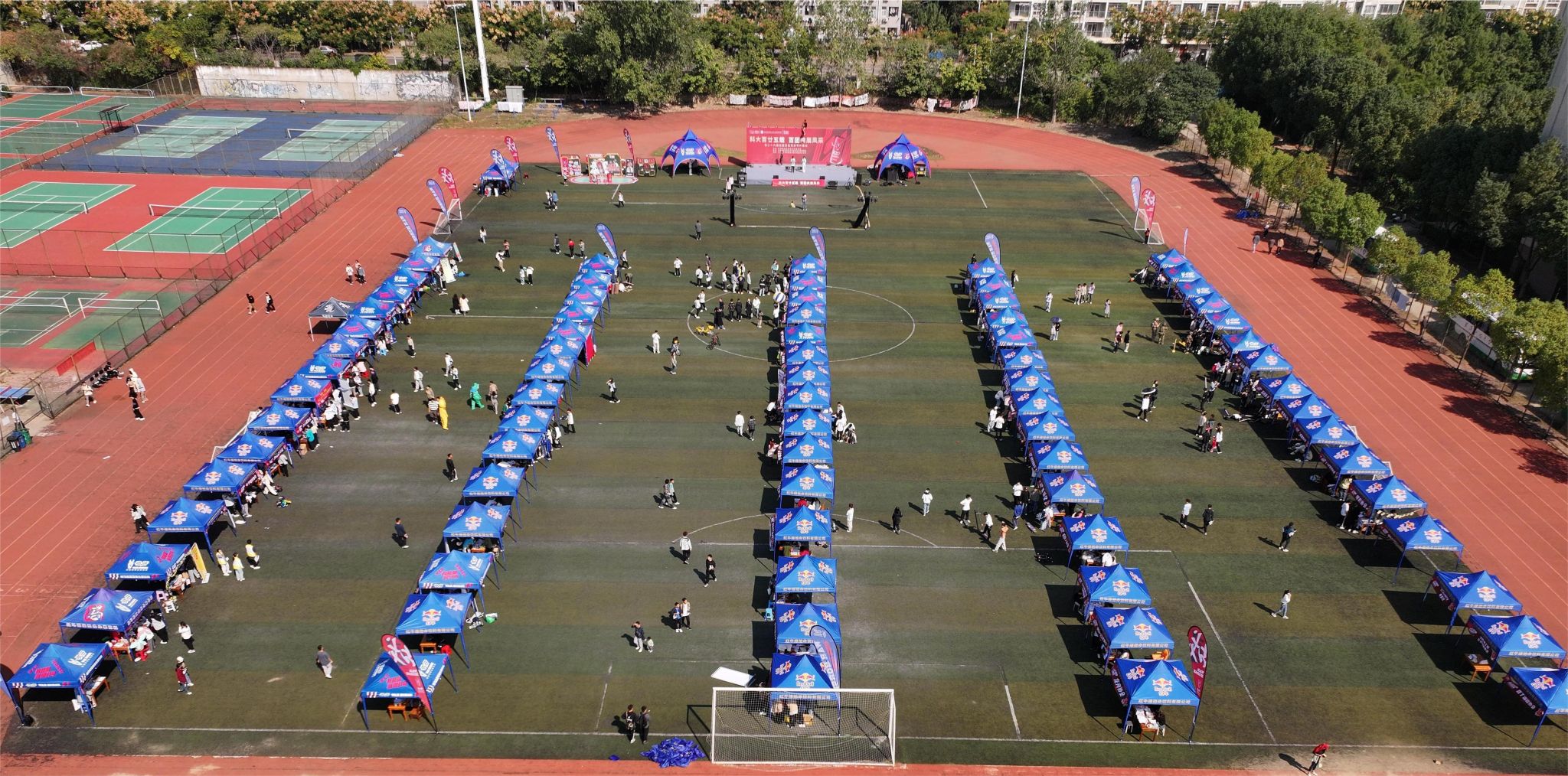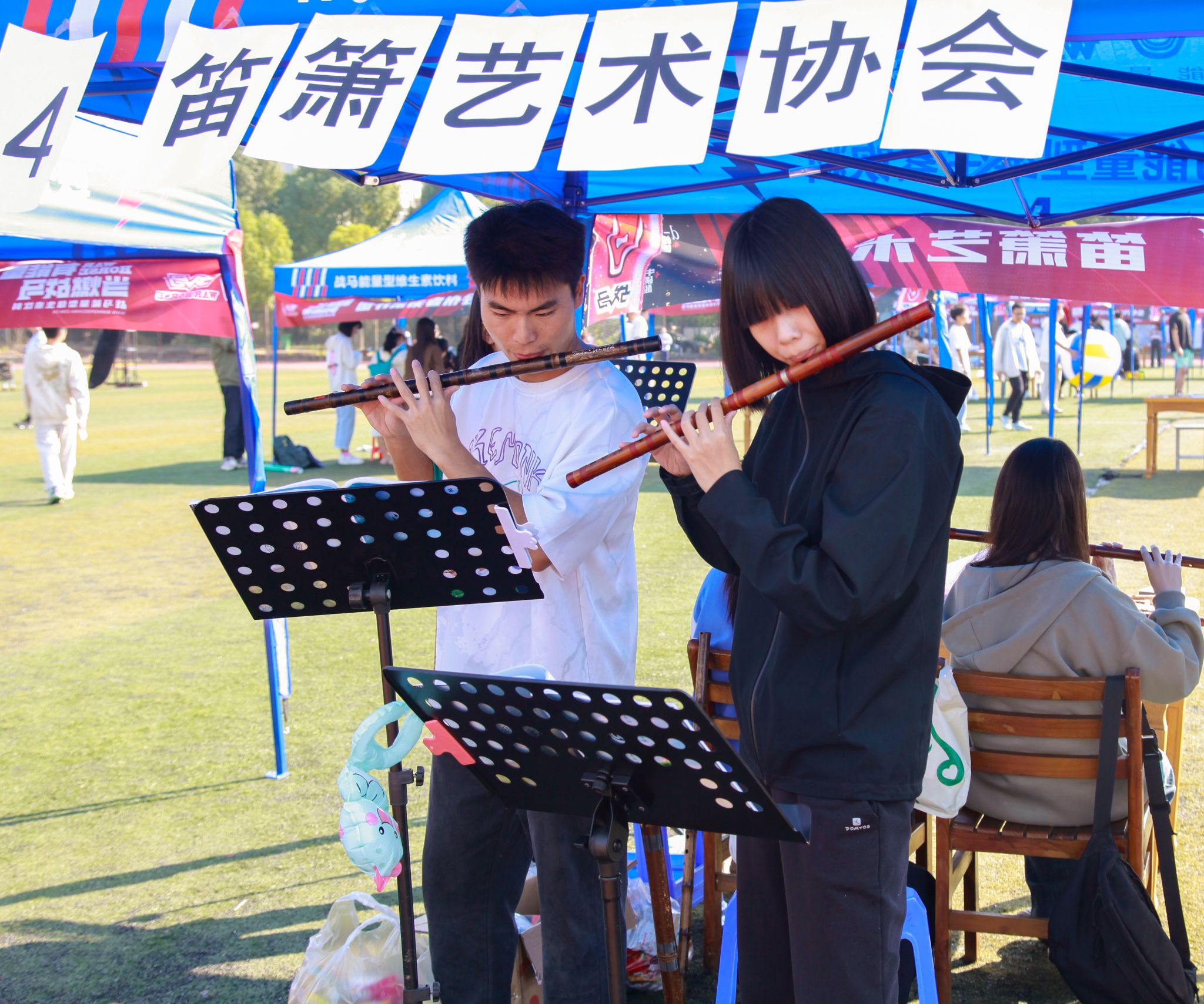 10月21日、22日两日,鸭脖于北苑操场举行百团大战,现场共有77个社团进行招新,不少同学来到现场了解自己的兴趣社团,体验社团活动,活动现场热闹非。(马茜云)