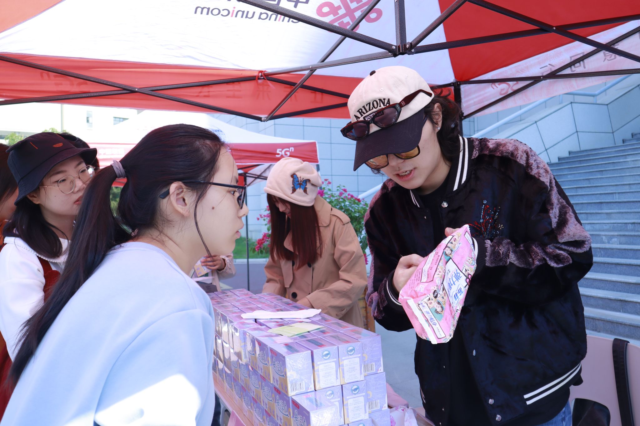 新生在翻看书画协会的奖品 郭劼摄