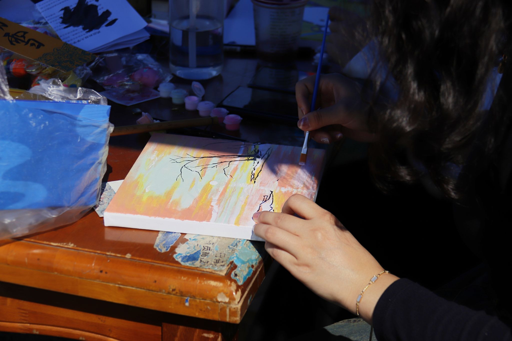 书画协会成员现场画画 郭劼摄