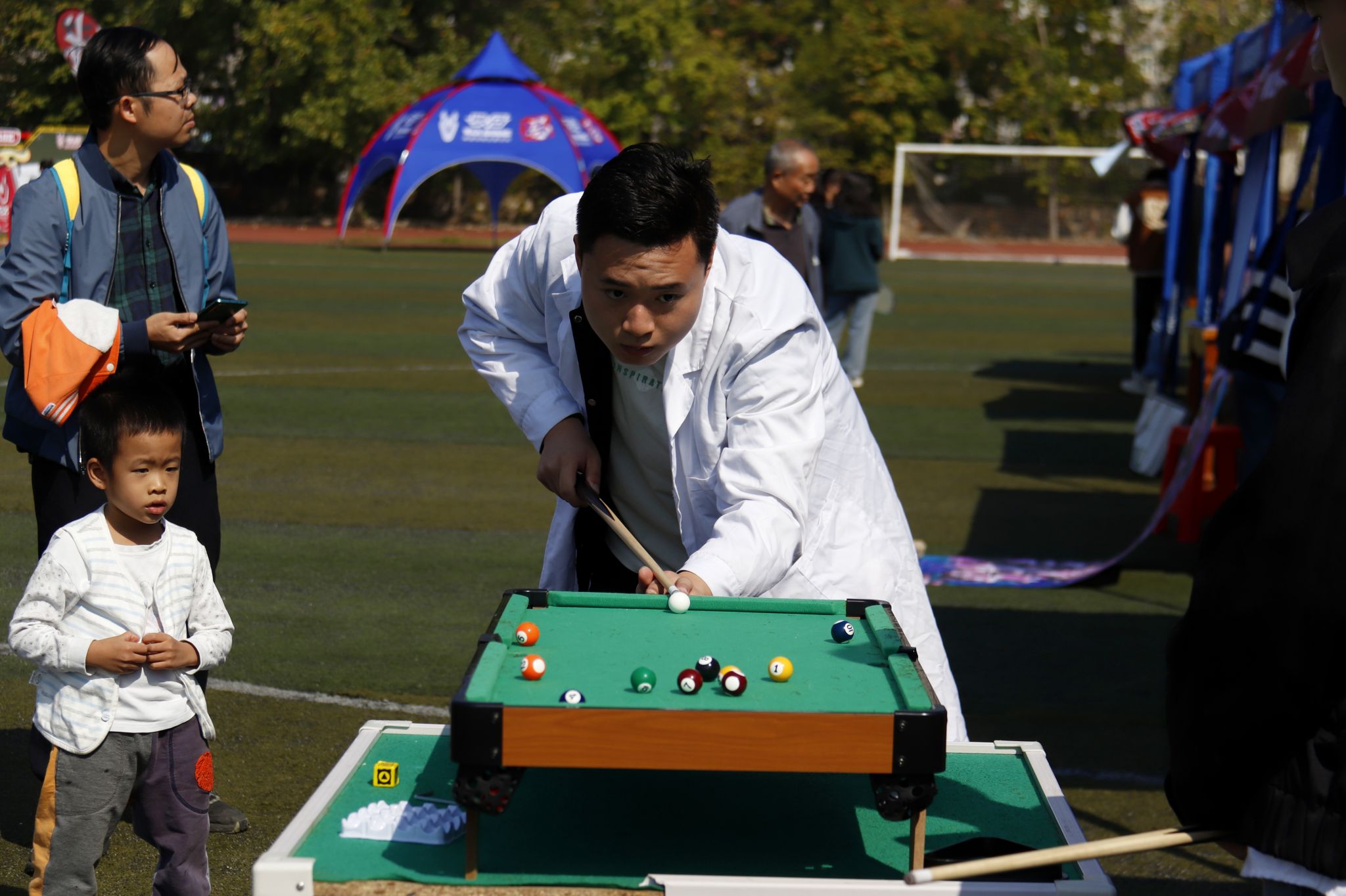 台球协会成员演示 郭劼摄