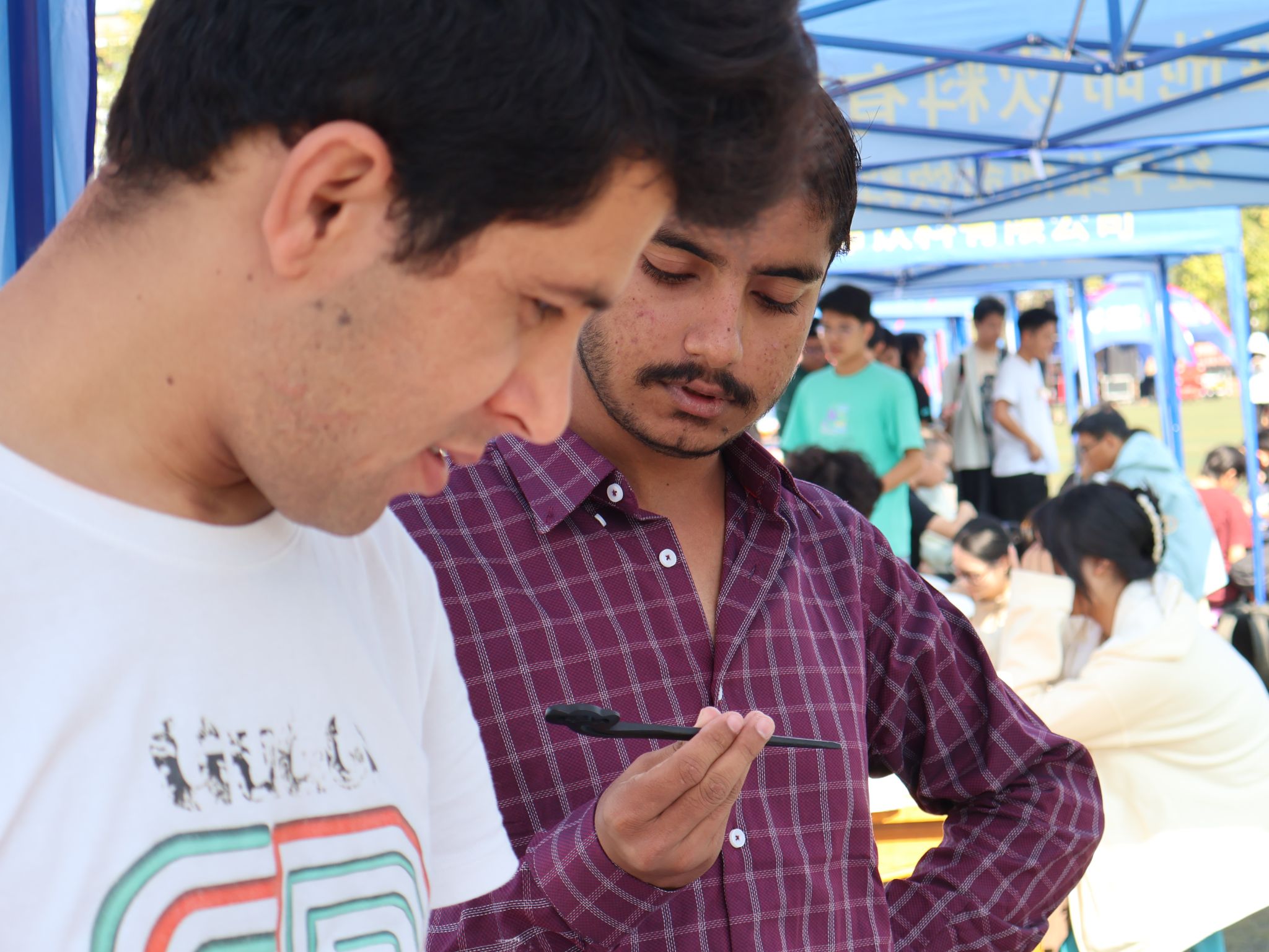 外国友人查看国风发簪 邹逸凡摄