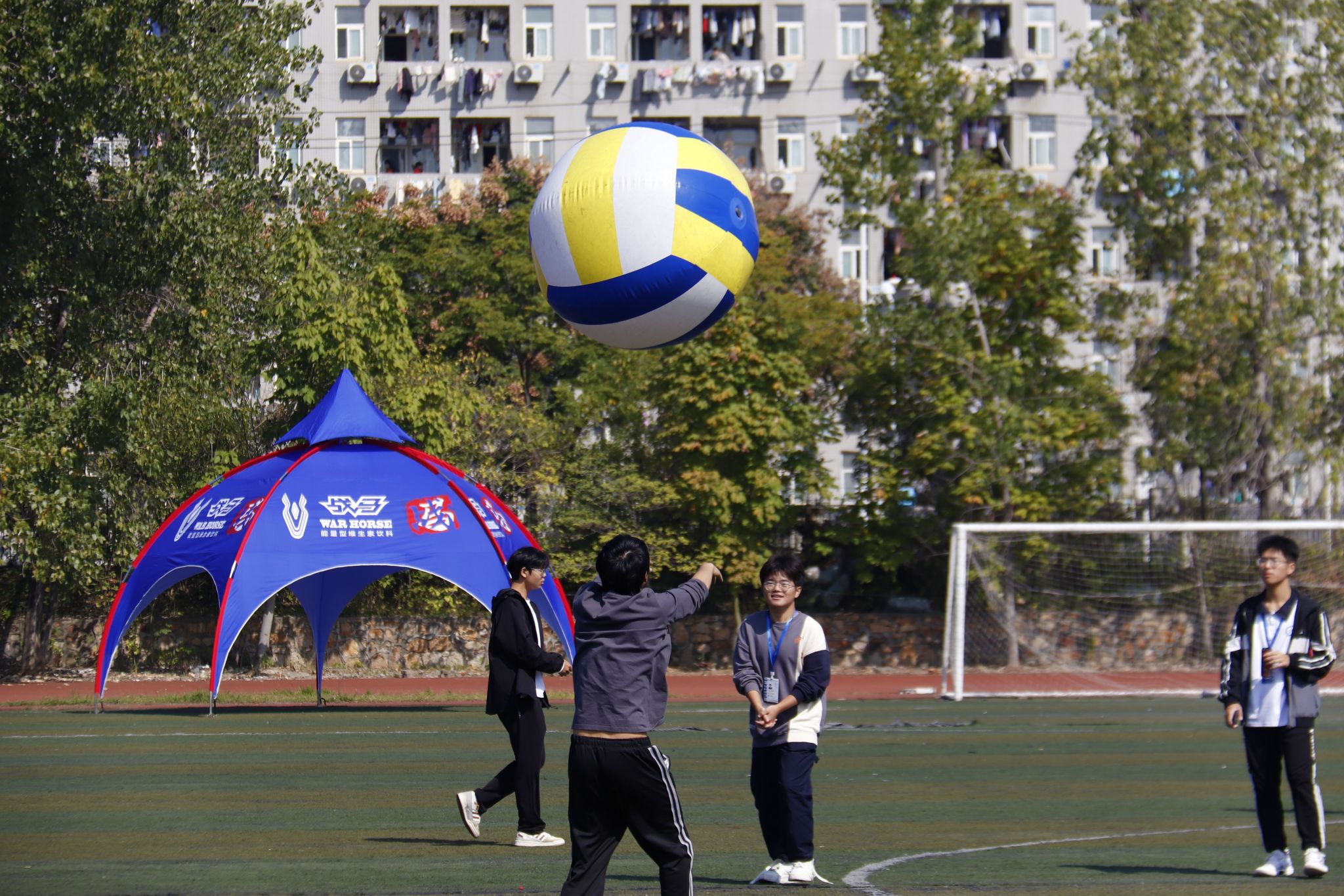 工作人员打大排球 郭劼摄