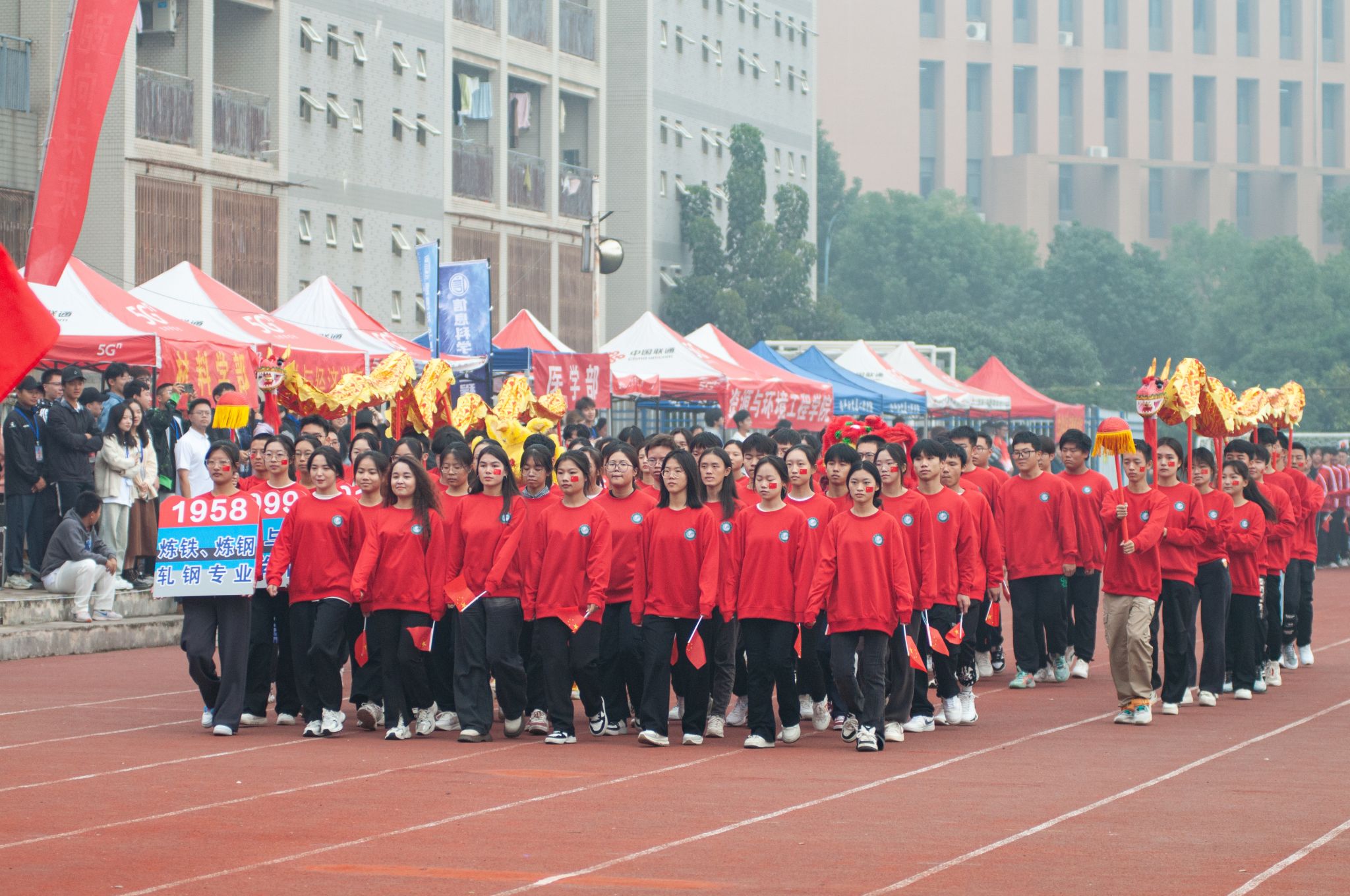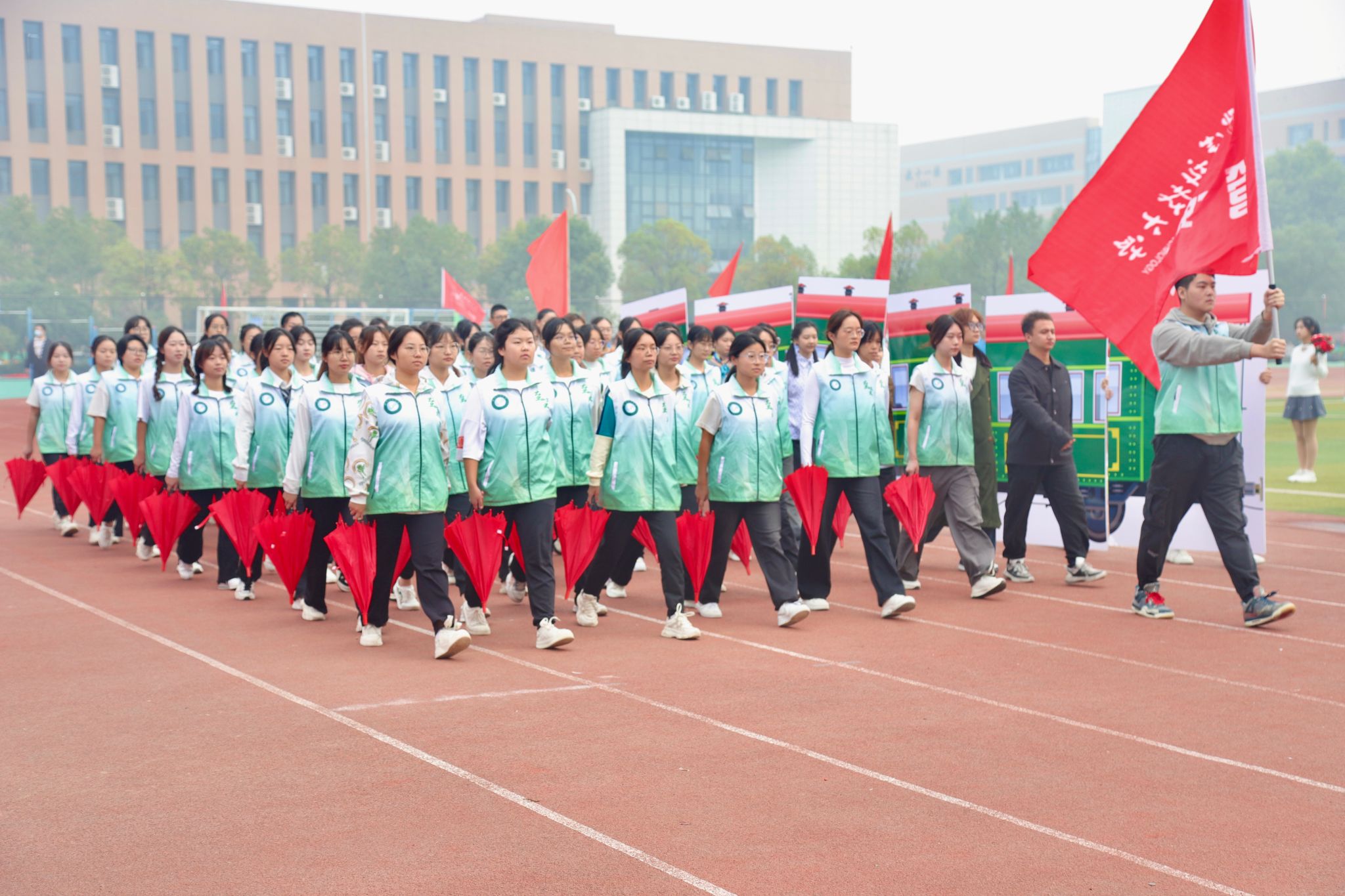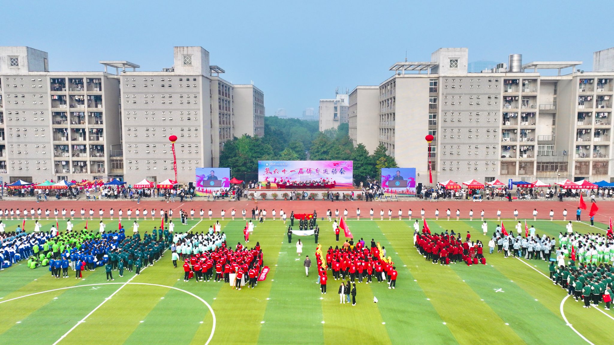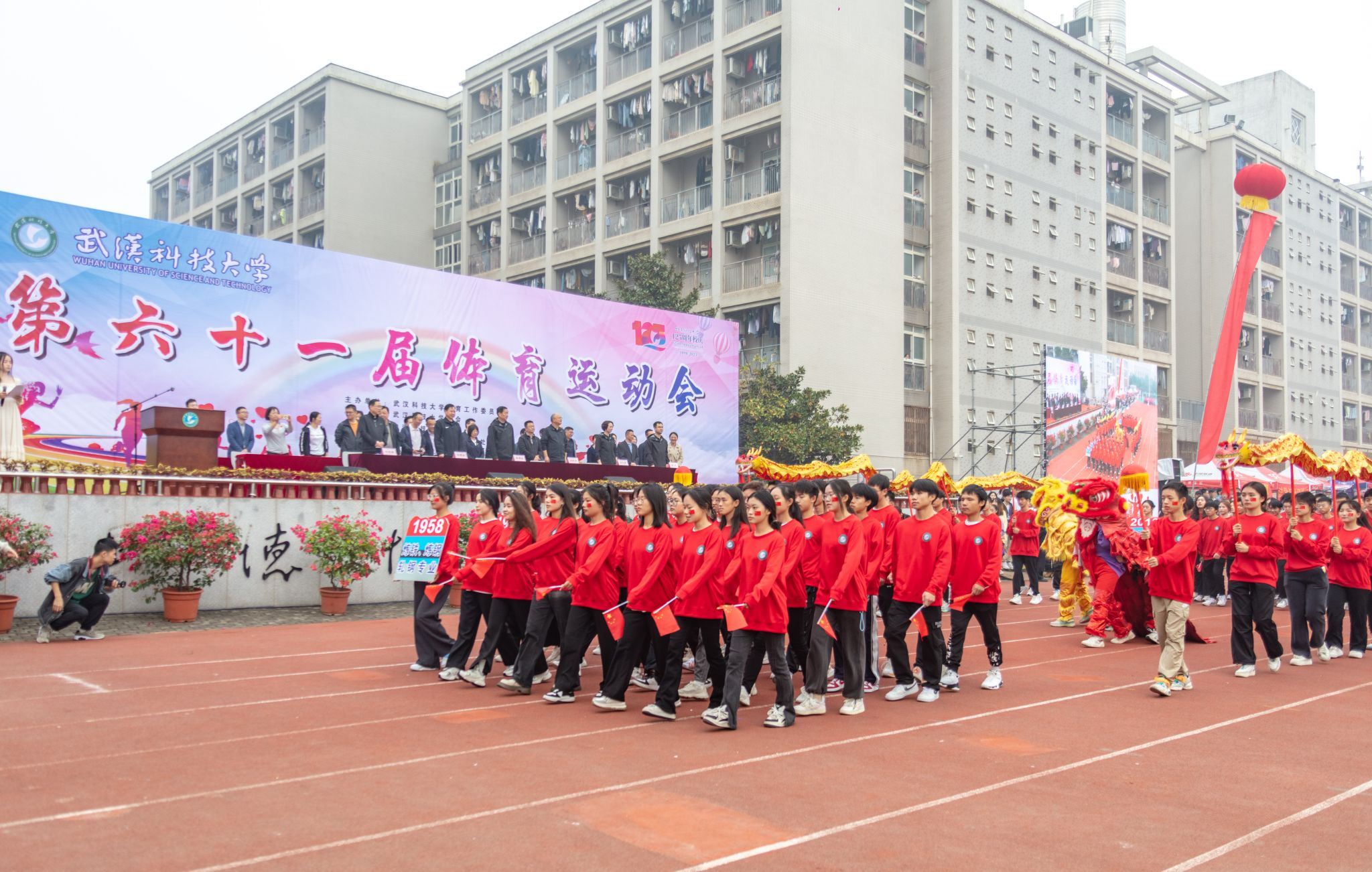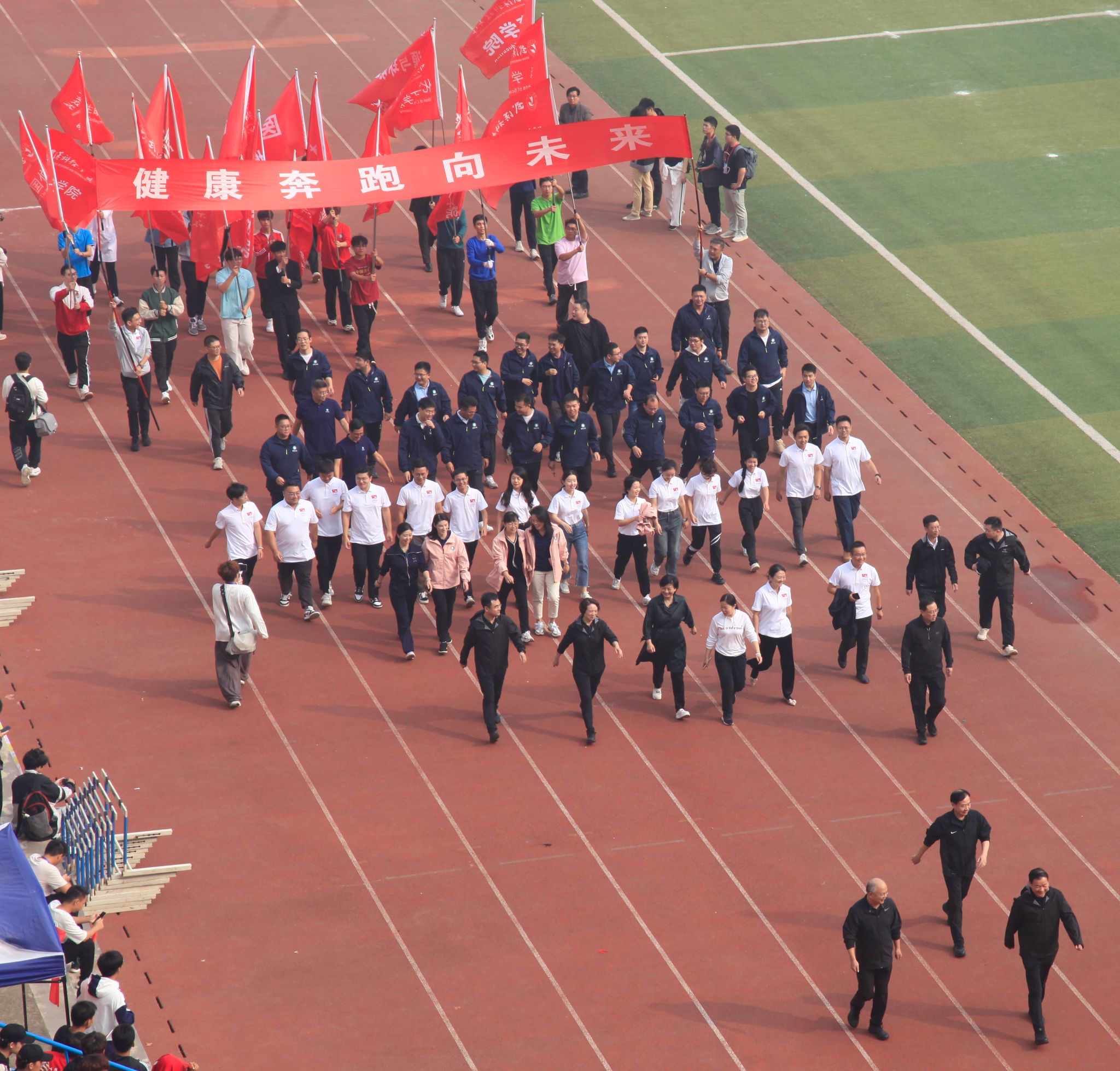 10月26日上午,鸭脖第六十一届运动会开幕式在南苑操场隆重召开。大会开始后,各代表队依次入场,全体成员奏唱国歌,校长致开幕词后,运动员代表及裁判员代表宣誓,随后运动会宣布开幕。各个学院的方阵整齐划一,展现出高度的纪律性和团队合作精神。同时,各个学院的表演也给观众带来了精彩绝伦的视觉盛宴。团体操表演充满活力,舞龙表演尽显文化底蕴,跆拳道表演展现力量与技巧之美。最后师生百人进行师生健康跑,体现“健康奔跑向未来”的主题,鼓励大家积极参与体育运动。整个开幕式充满了激情和活力,为运动会的顺利进行打下了良好的基础。(田世杰 母鑫宇 王政全)