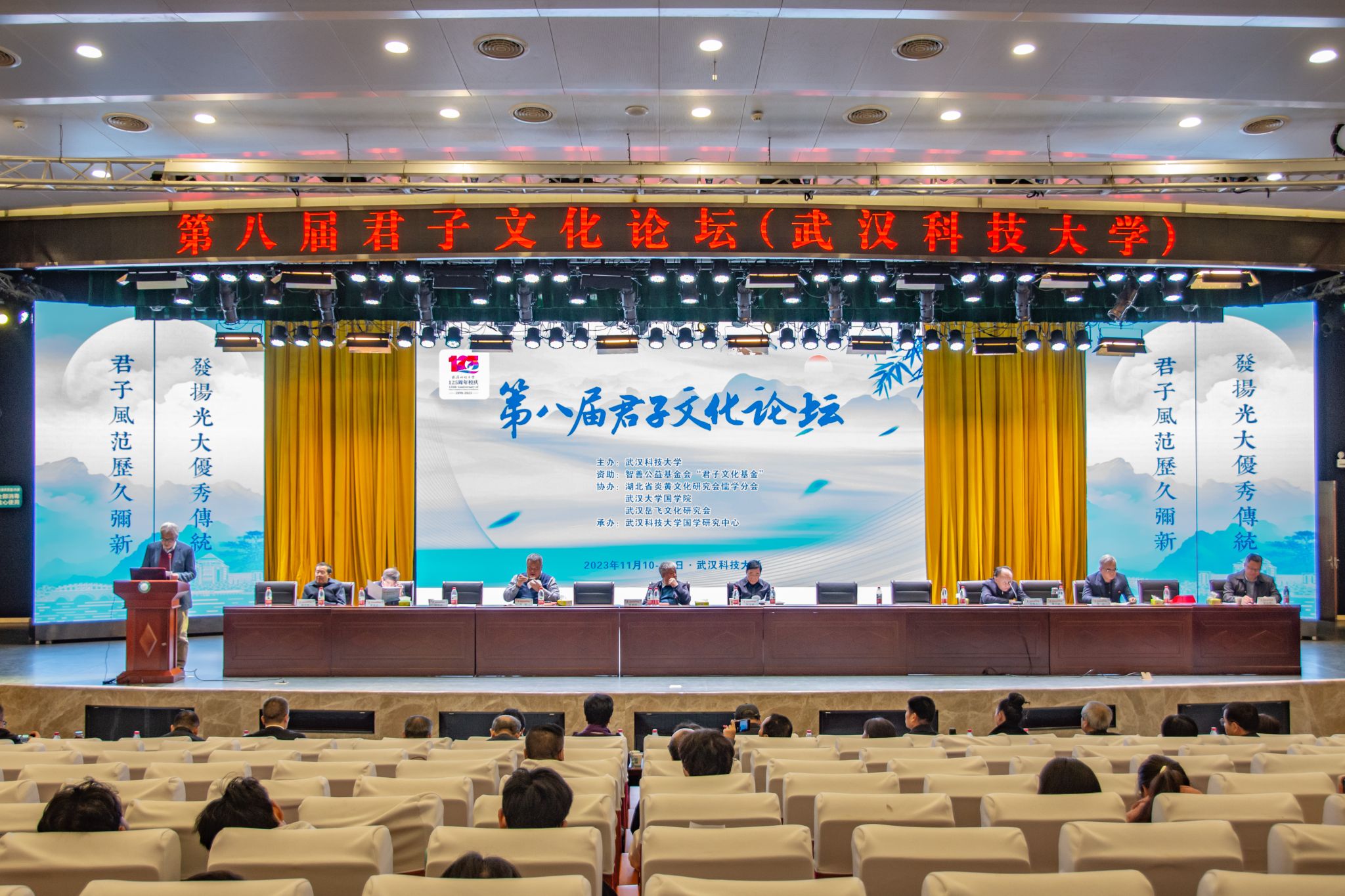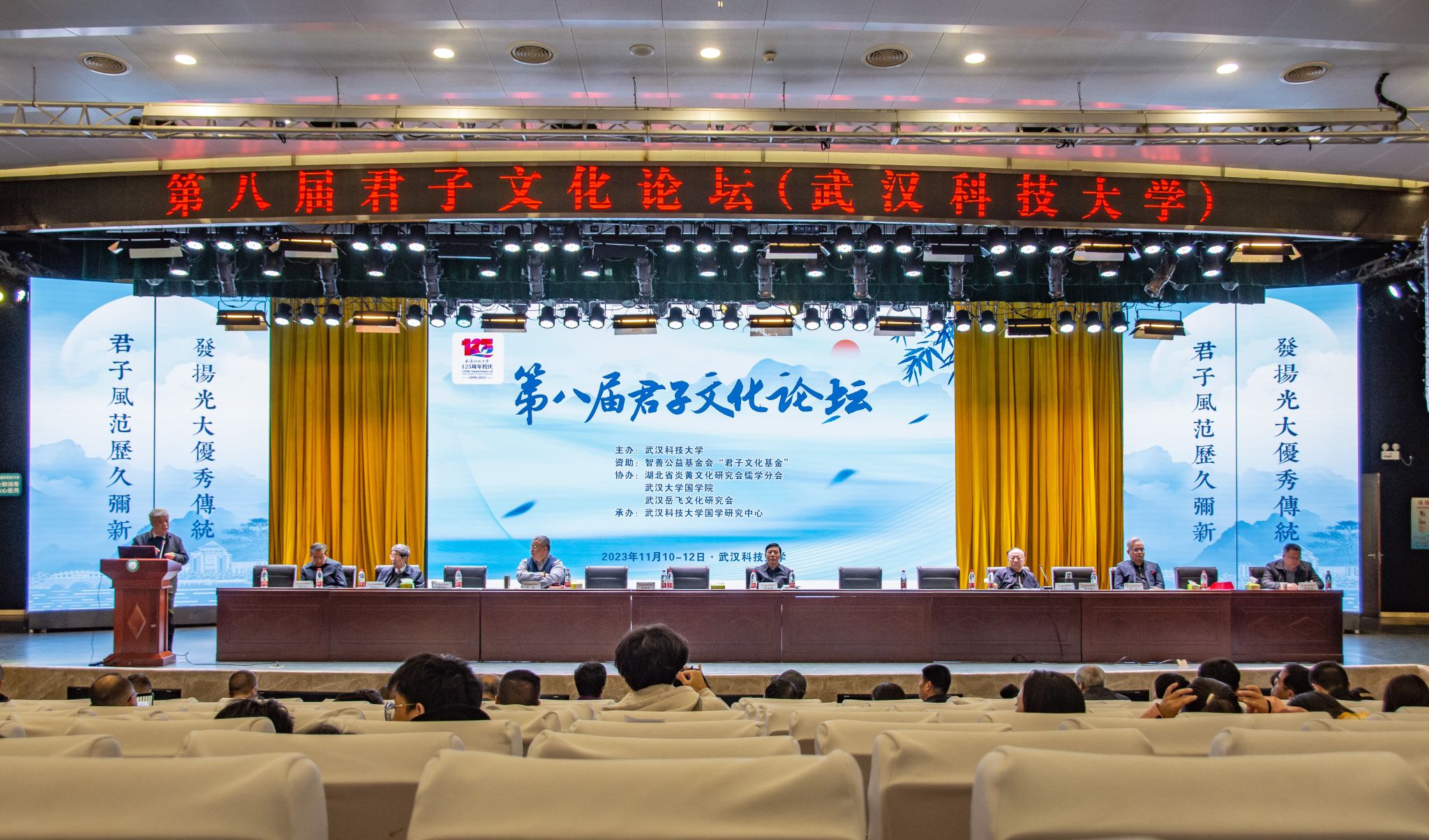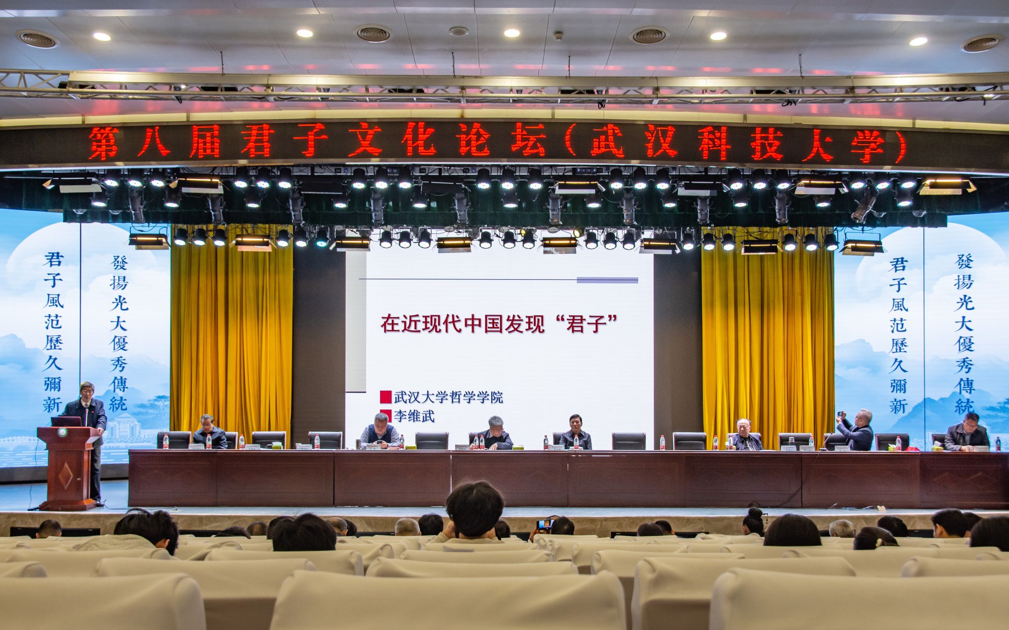 君子风范历久弥新,发扬光大优秀传统。11月11日,第八届君子文化论坛开幕式在鸭脖青山校区钢铁楼碧园会堂召开,本次论坛讨论的主题为“君子文化的知与行”。来自全国高校、科研院所、君子文化研究机构的专家学者和鸭脖师生300余人齐聚一堂,共话君子文化传承与创新。校长倪红卫,光明日报社原副总编辑李春林,著名作家周大新,中央党校教授、中国实学研究会会长王杰出席开幕式并致辞。校党委常委胡剑主持开幕式。