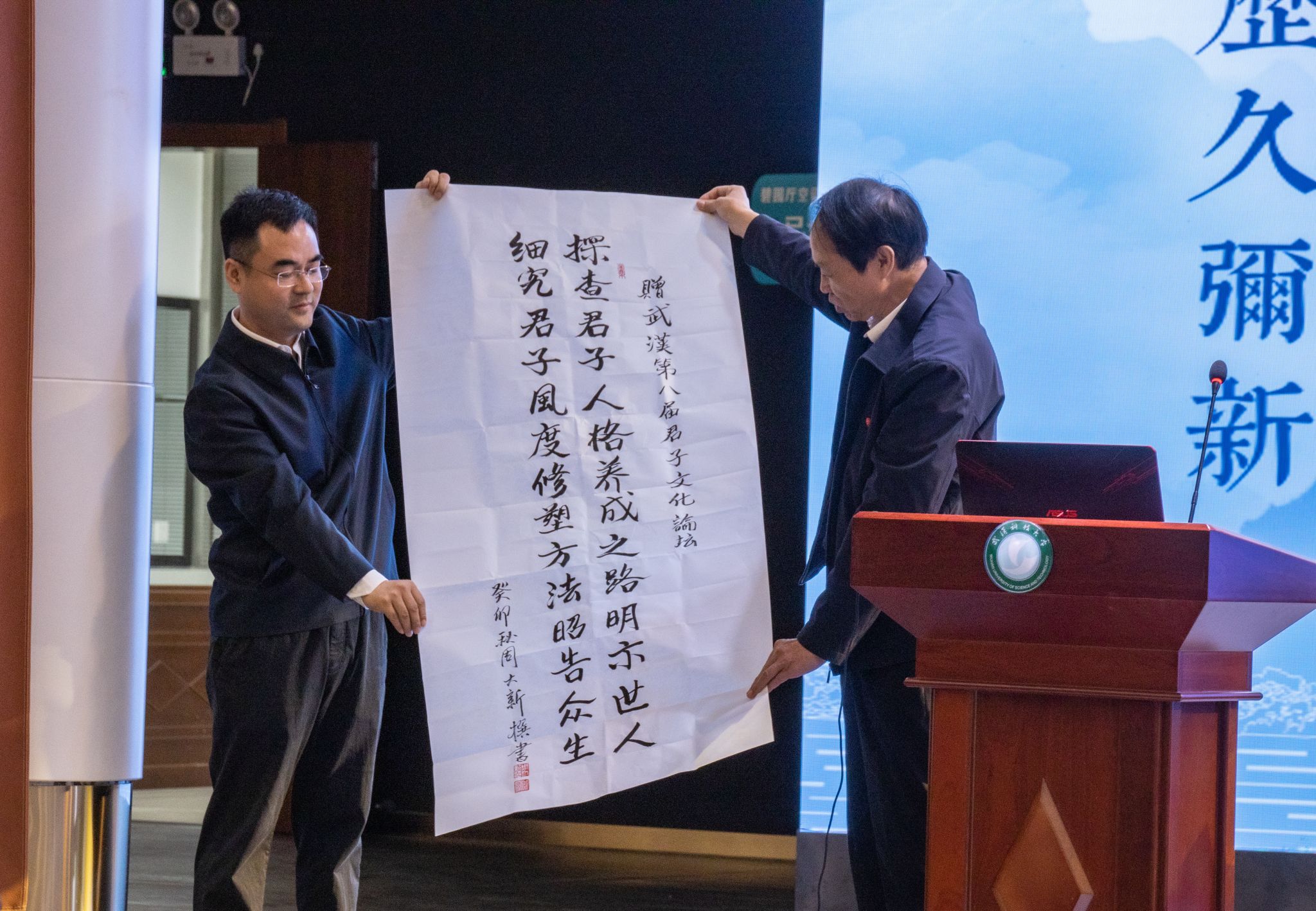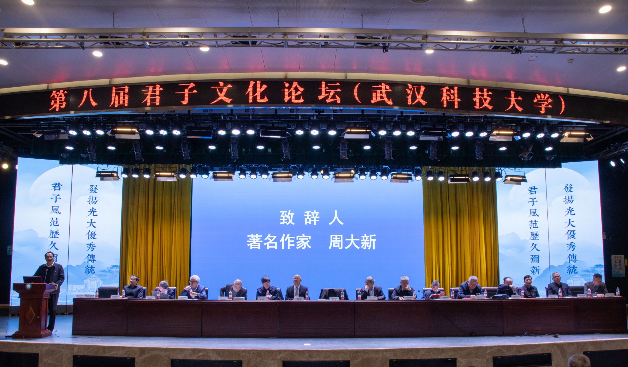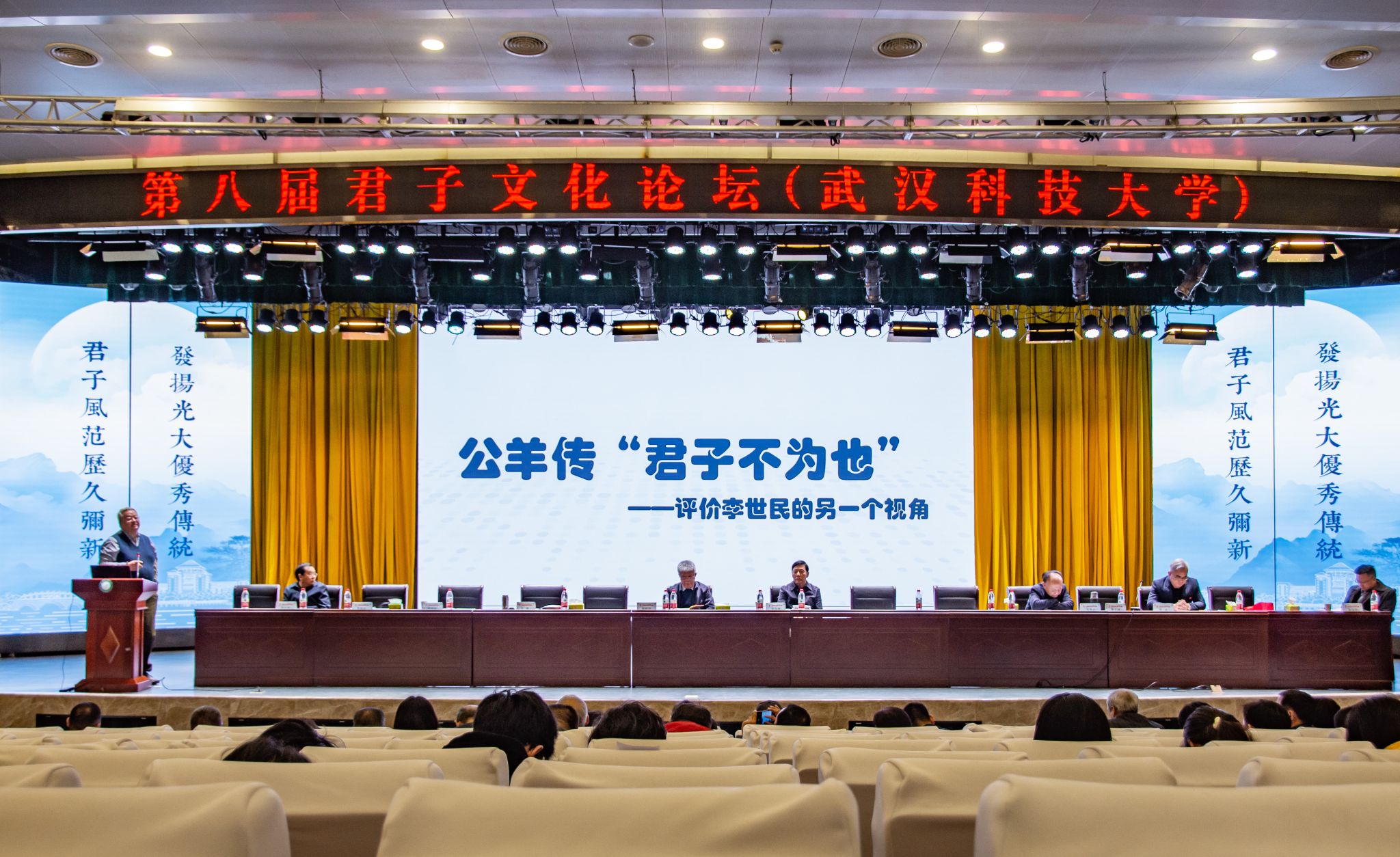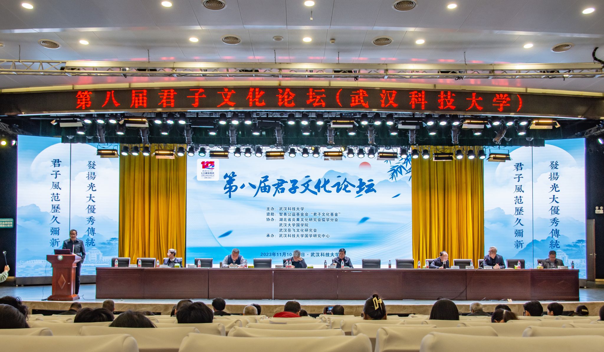 君子风范历久弥新,发扬光大优秀传统。11月11日,第八届君子文化论坛开幕式在鸭脖青山校区钢铁楼碧园会堂召开,本次论坛讨论的主题为“君子文化的知与行”。来自全国高校、科研院所、君子文化研究机构的专家学者和鸭脖师生300余人齐聚一堂,共话君子文化传承与创新。校长倪红卫,光明日报社原副总编辑李春林,著名作家周大新,中央党校教授、中国实学研究会会长王杰出席开幕式并致辞。校党委常委胡剑主持开幕式。