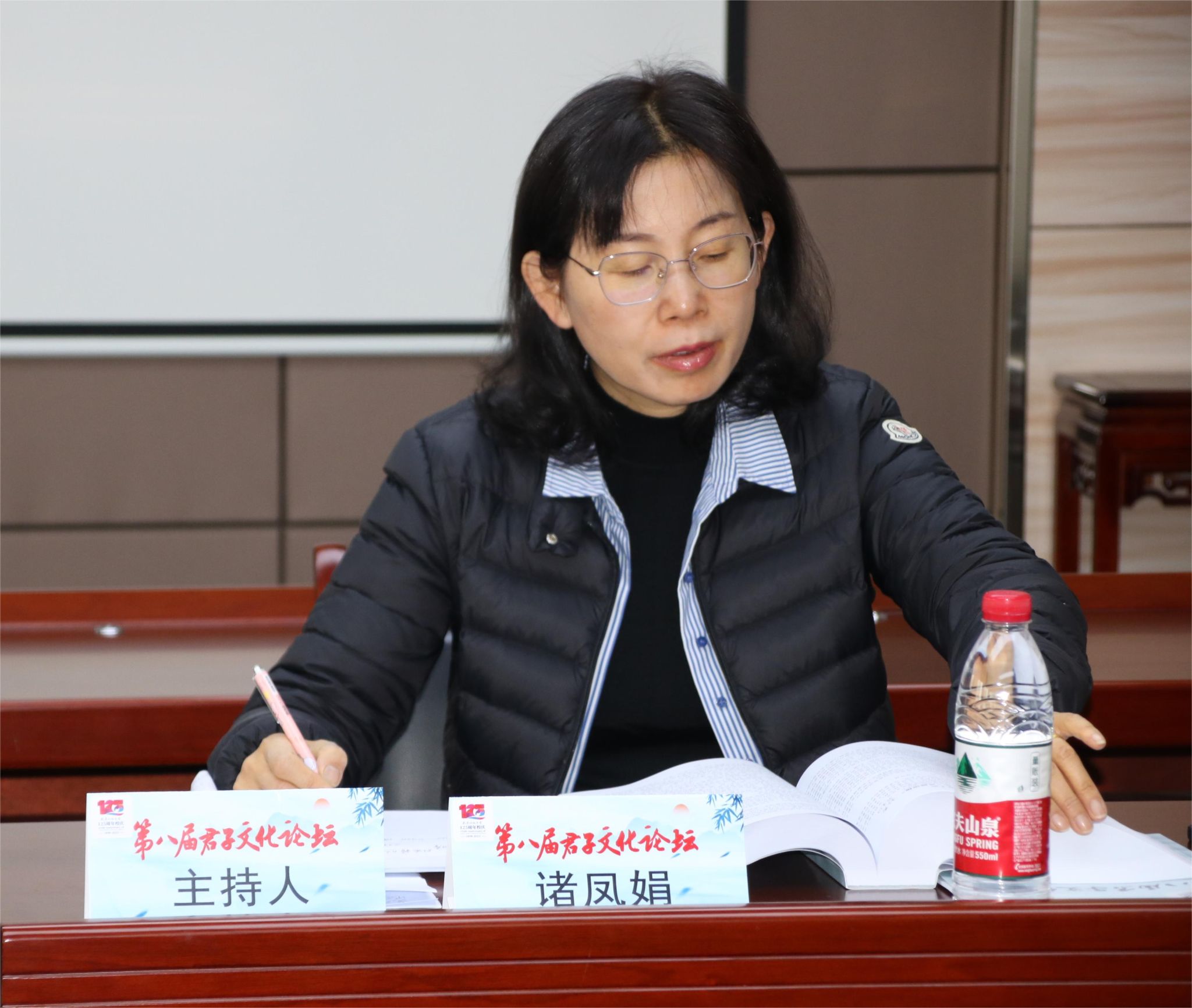 绍兴文理学院人文社科处长诸凤娟认真记录 耿文潇摄