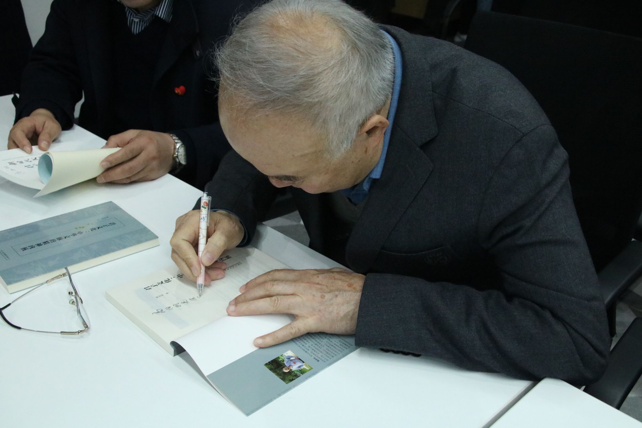 全国人大代表、安徽省社科院资深研究员钱念孙为与会人员特签 耿文潇摄