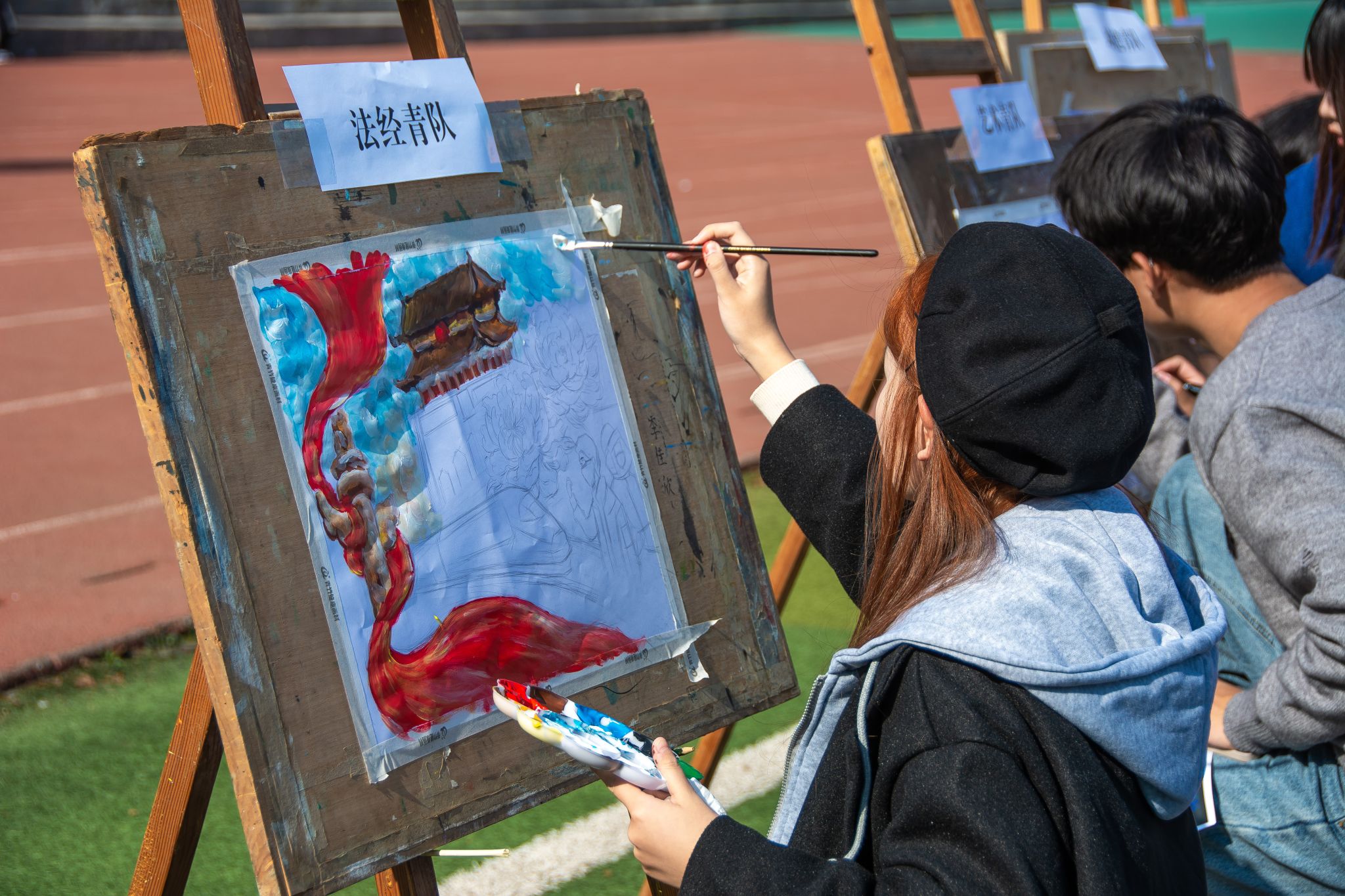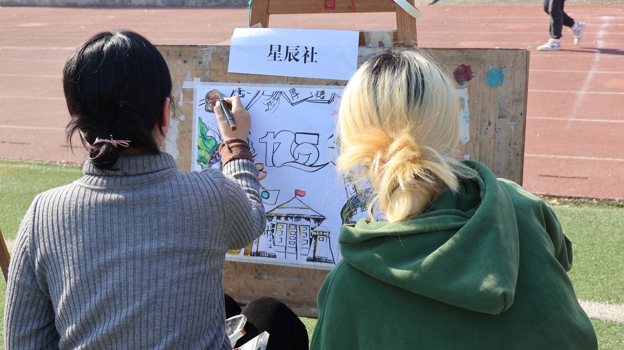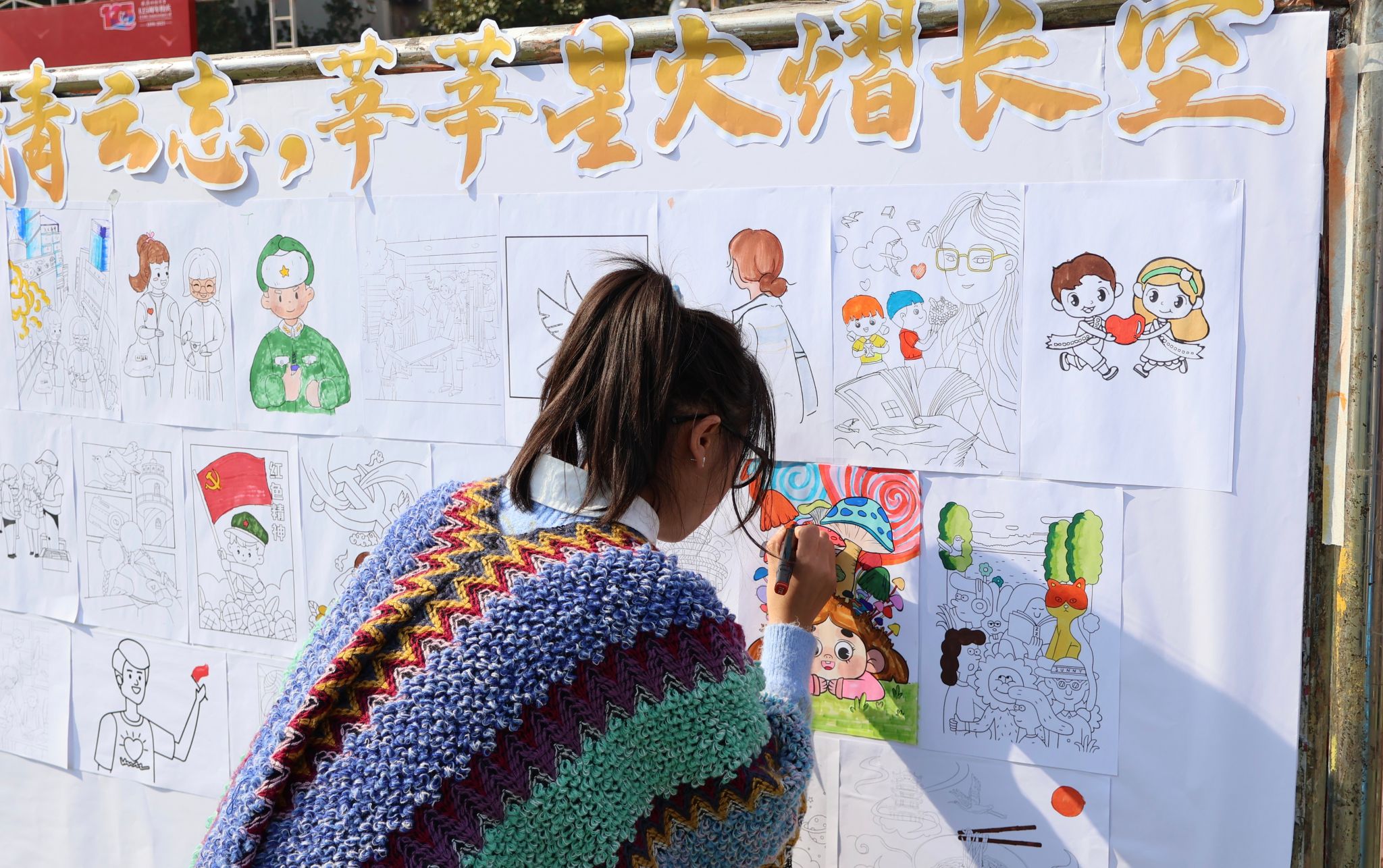 志愿者参加百米画卷 母鑫宇摄