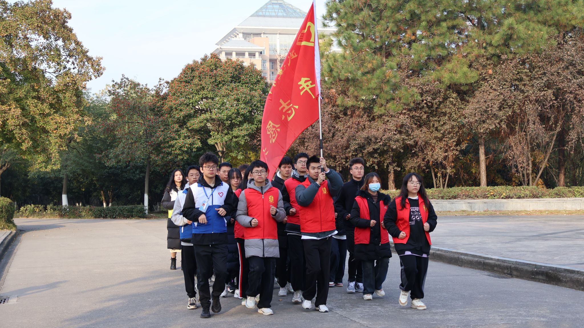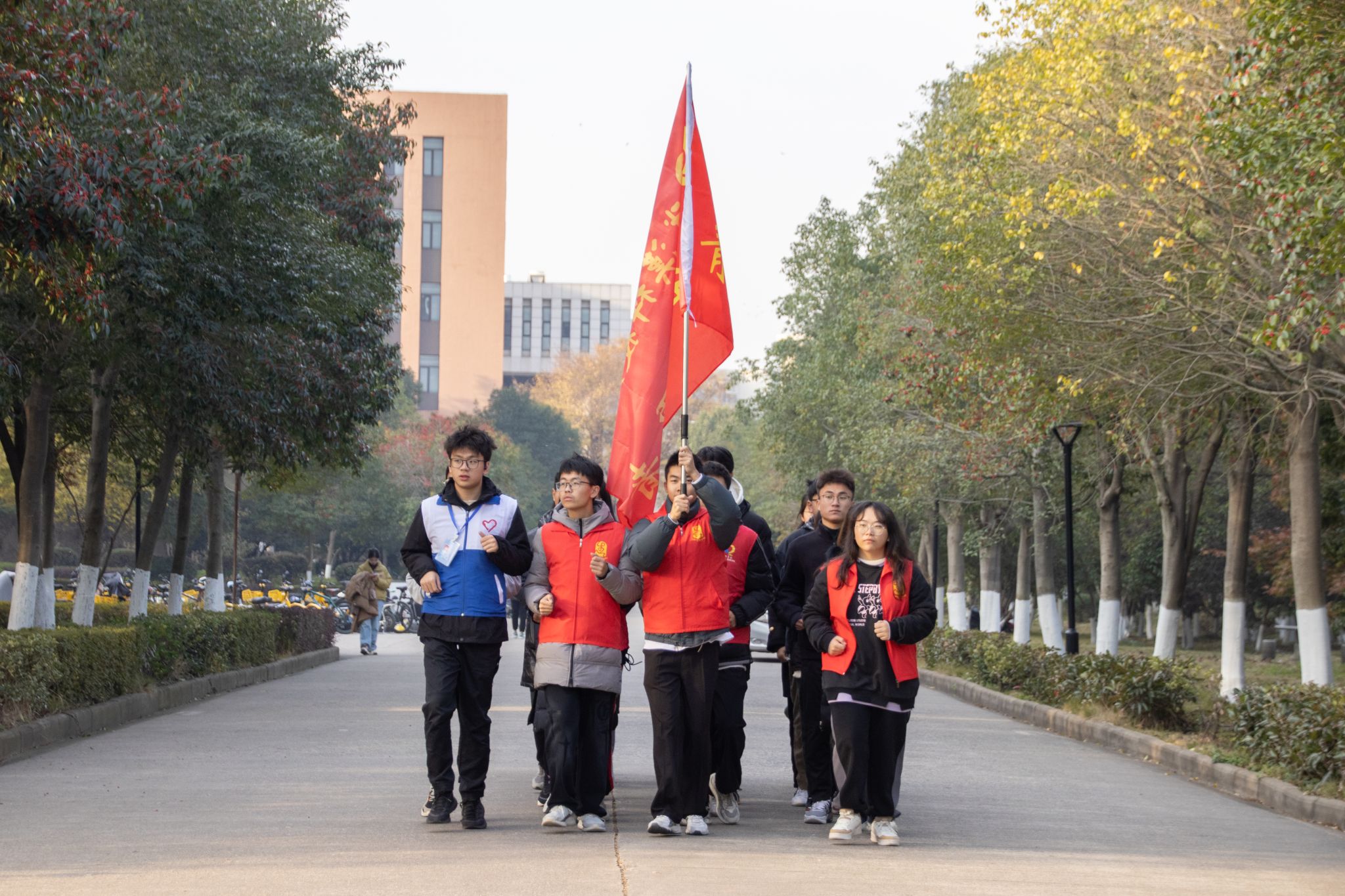 前往下一个交接点的志愿者队伍 母鑫宇摄