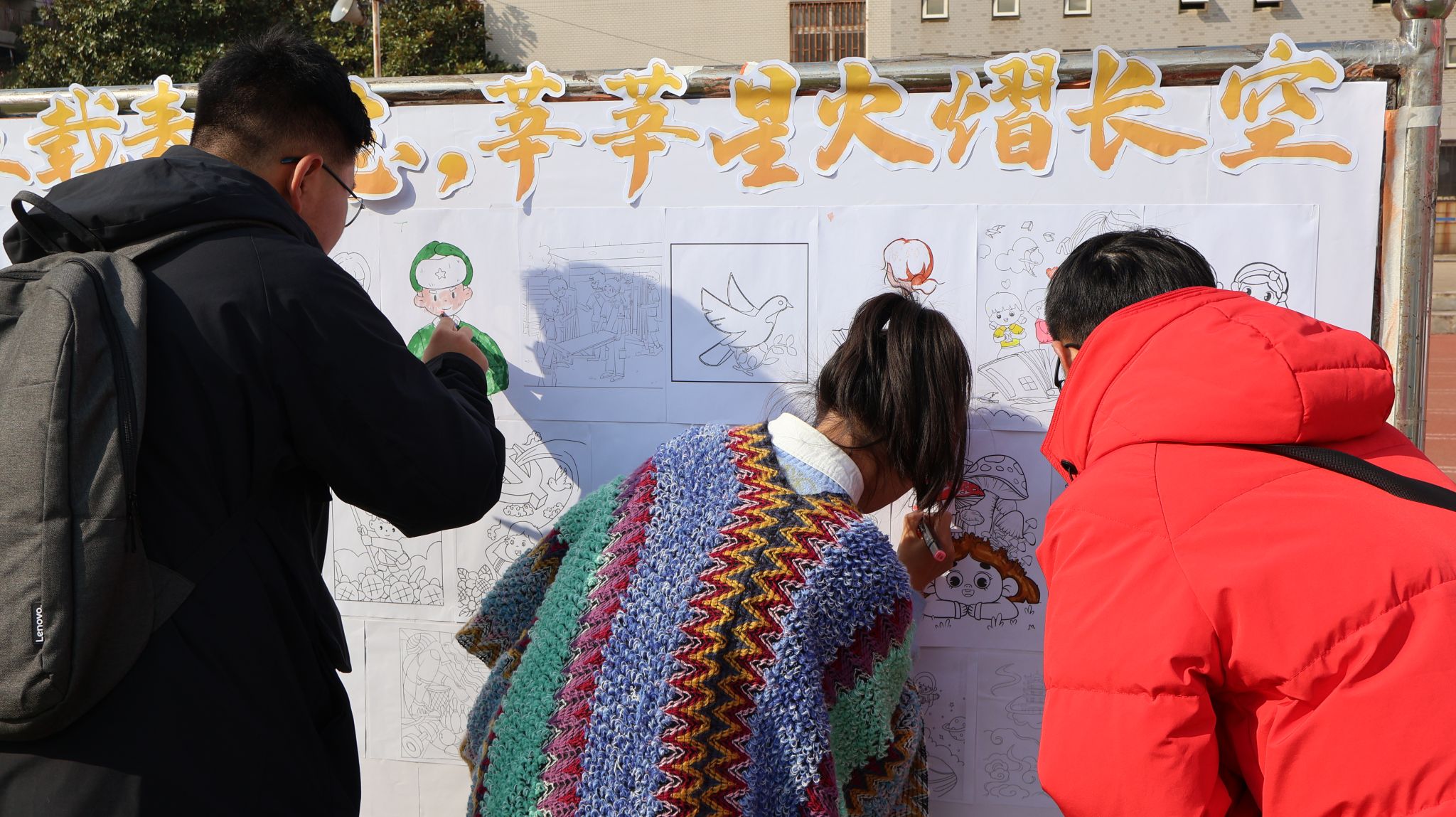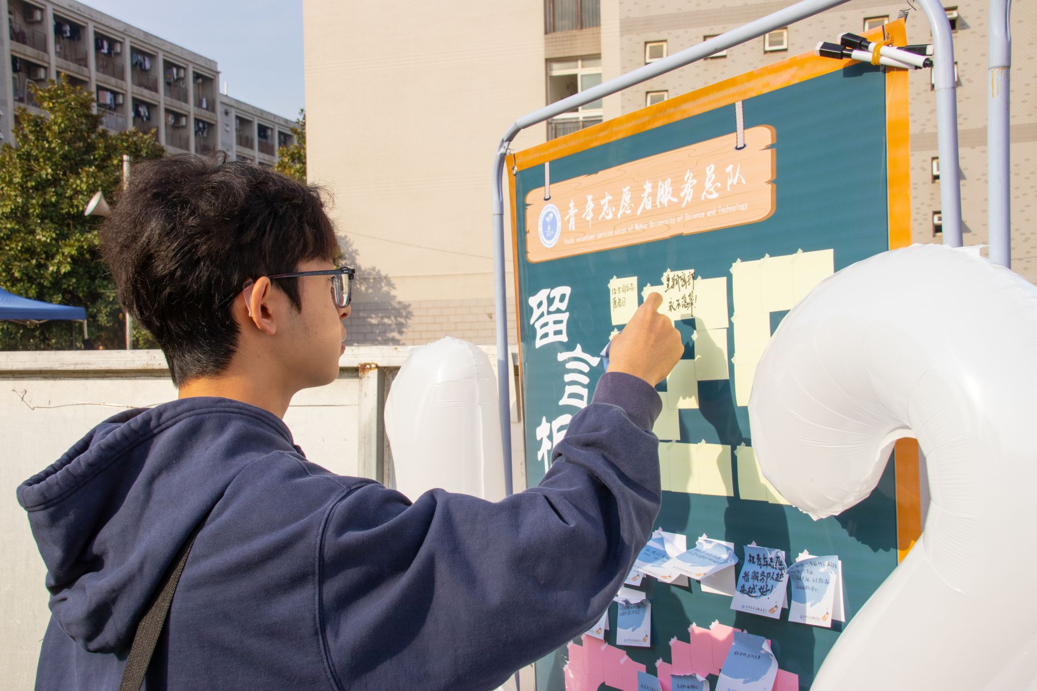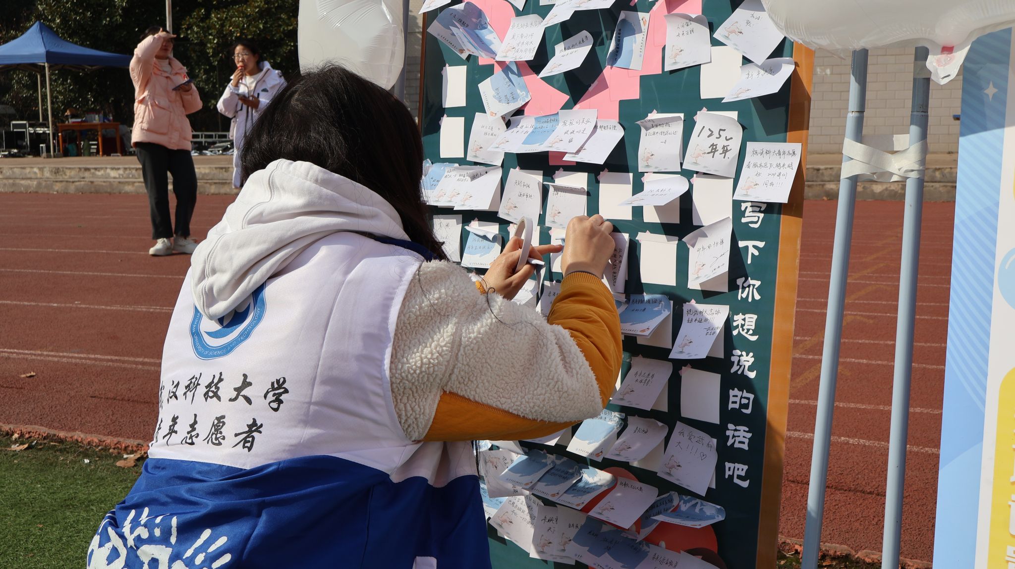 志愿者贴便利贴 吴梦翔摄