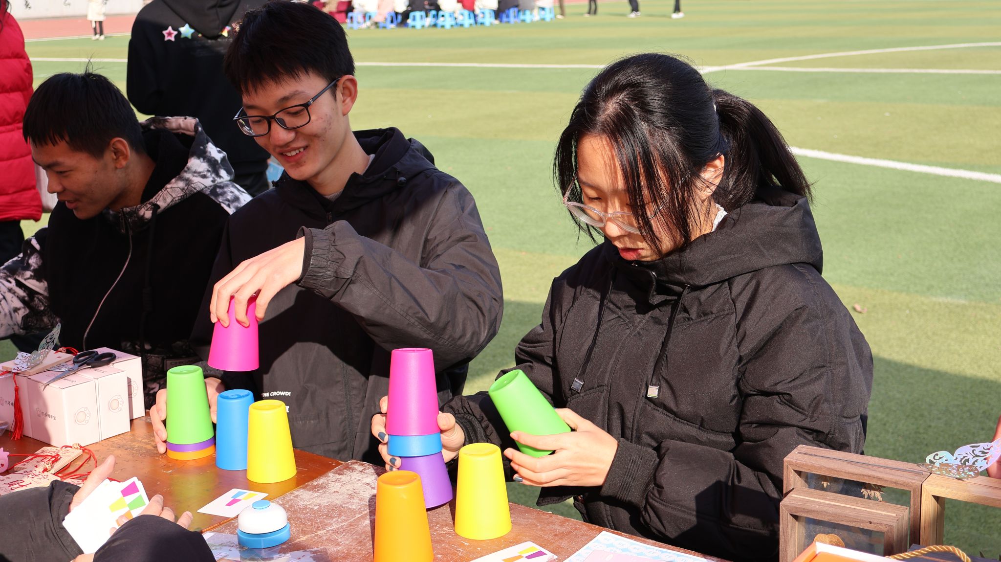 朋友比赛叠杯子 吴梦翔摄