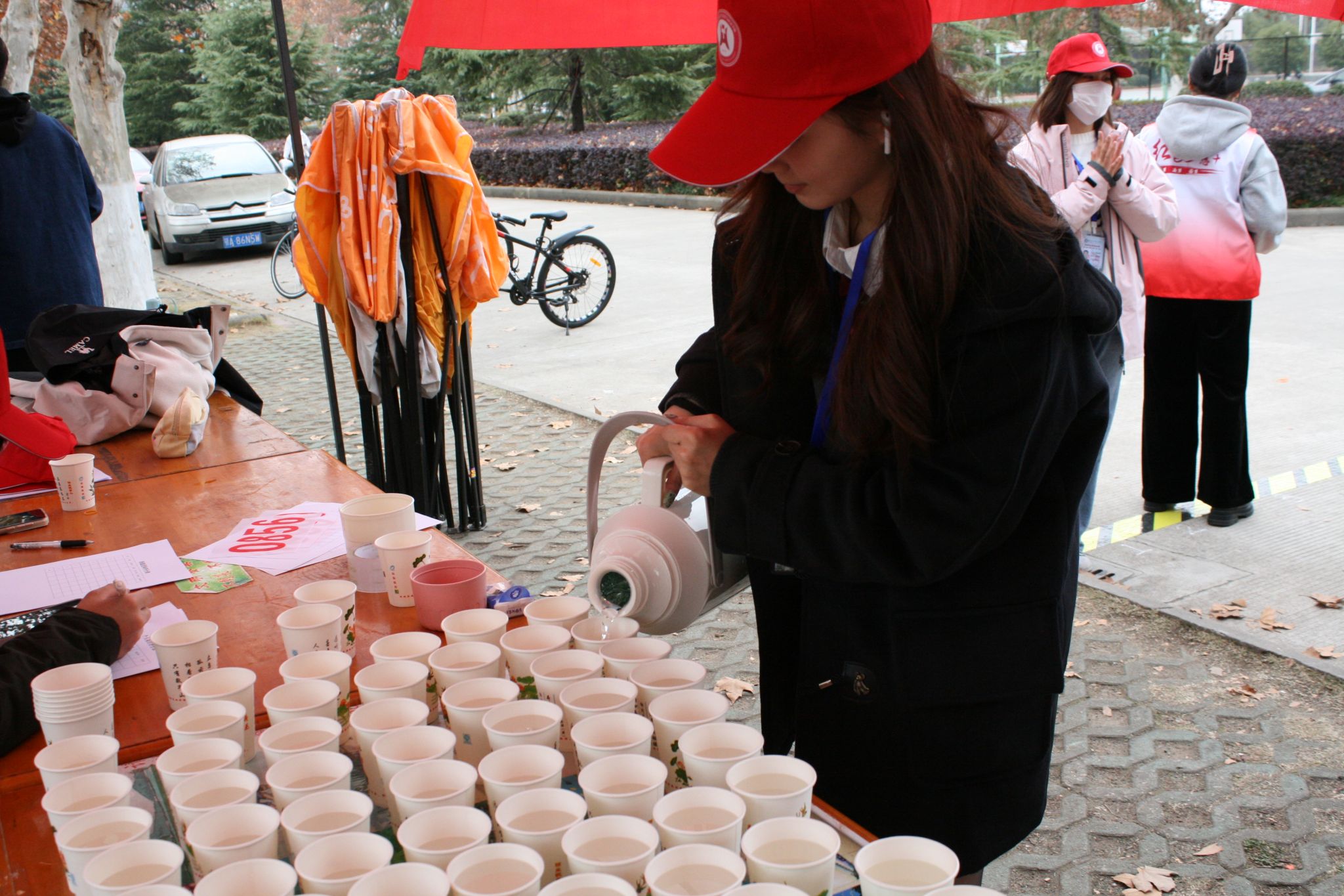 志愿者倒水 杜玉欣摄