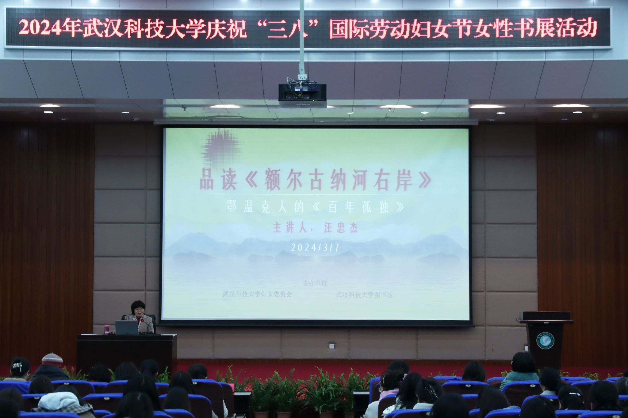 3月7日上午九点,鸭脖在校图书馆崇实会堂开展庆“三八”女性书展专题活动,由汪忠杰带领观众品读《额尔古纳河右岸》-鄂温克人的《百年孤独》,学生朱荣分享《额尔古纳河右岸》跨“阅”学科,读破局限,多名校领导、负责人、女教职工代表与女大学生代表均出席参加,许多同学也来到现场参与互动。