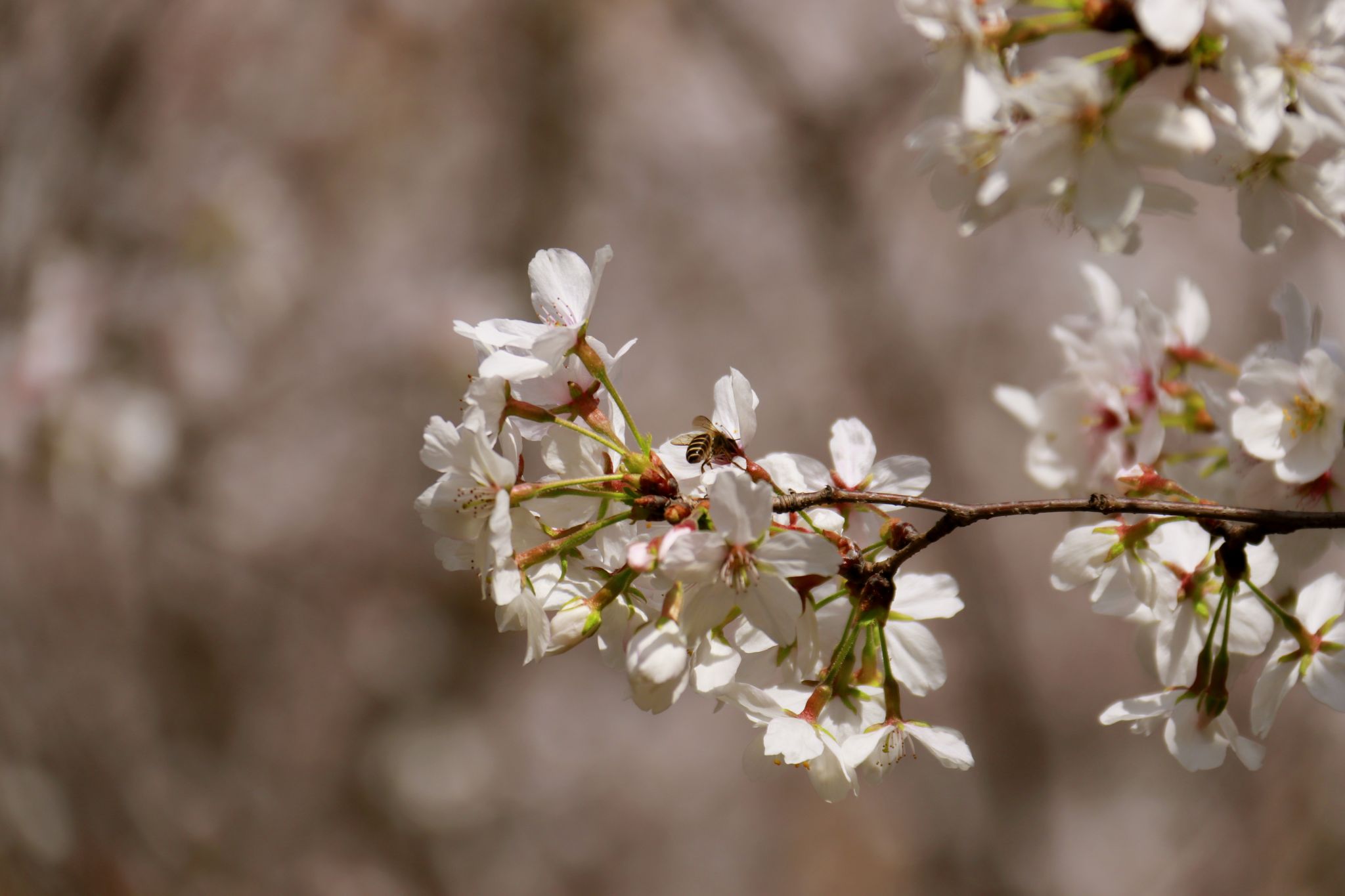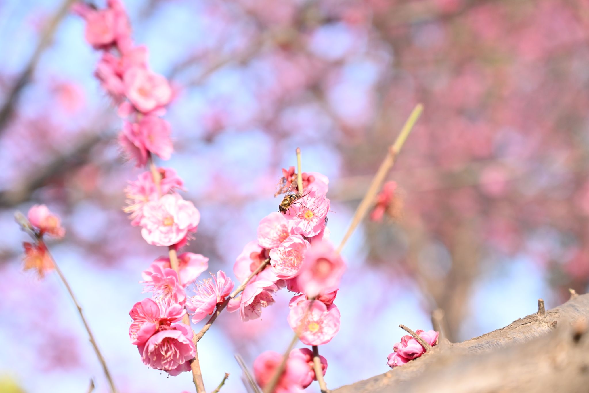 紫叶李,蜜蜂吃花蜜 郭劼摄