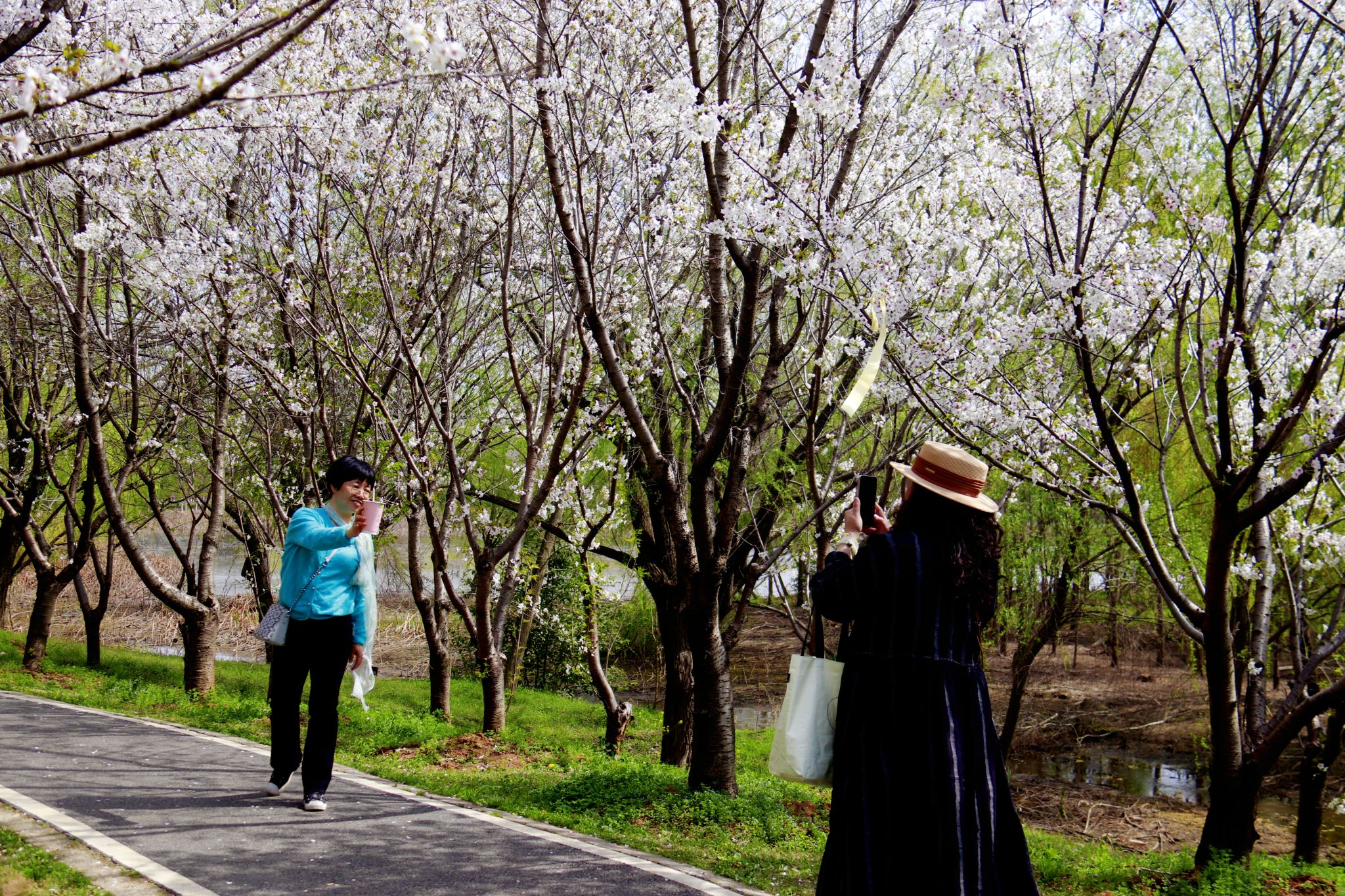 游客拍摄樱花树 郭劼摄